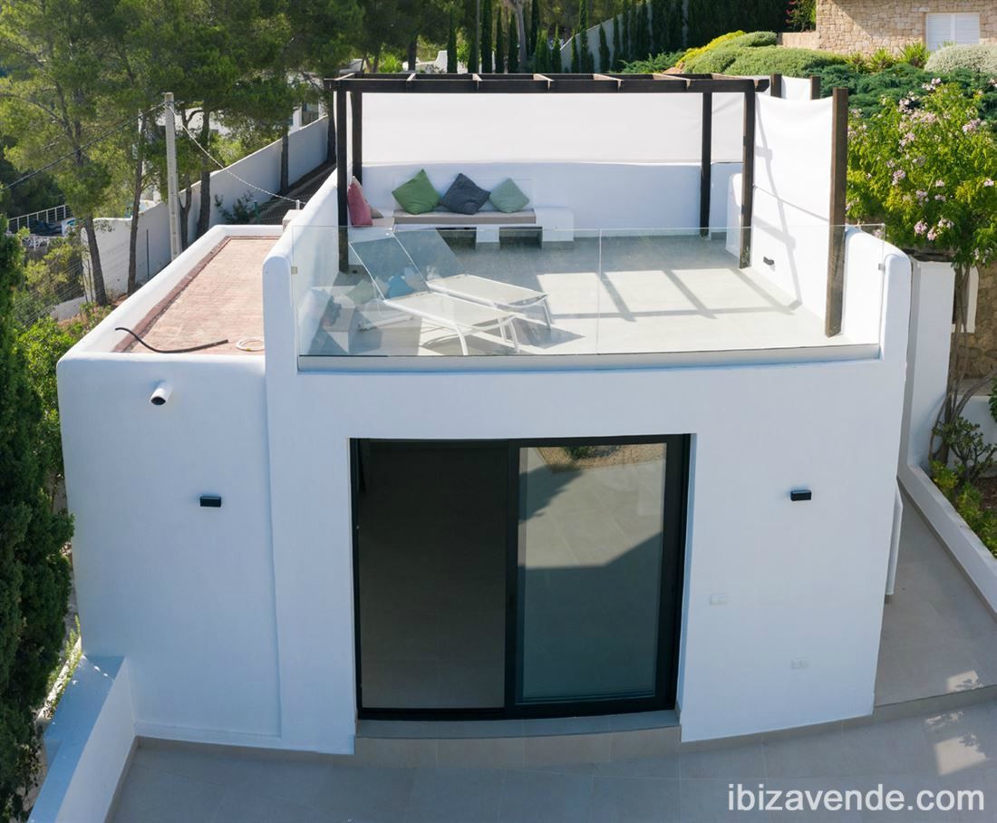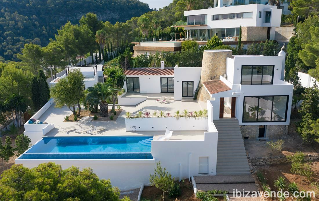 La propiedad se encuentra en una parcela de 2.442 m2 y tiene una villa principal con torre y varias terrazas grandes. También hay una casa de invitados separada con una gran terraza en la azotea.La preocupación está ubicada en una calle con poco tráfico (callejón sin salida) y está completamente asegurada desde el exterior y, por lo tanto, no es visible. Esto garantiza la mayor seguridad, privacidad y tranquilidad posibles.La arquitectura y los materiales de vanguardia se fusionan con la estructura original, que es lo que hace que esta preocupación sea tan encantadora. Cabe destacar el antiguo jardín detrás de la casa principal que inmediatamente encanta e invita a relajarse bajo la sombra de los árboles.La casa principal, que se originó en 1978, tiene una encantadora torre, que tiene el dormitorio principal con "baño en suite".Una gran terraza junto al dormitorio principal ofrece excelentes vistas al mar y las islas cercanas. Hay dos dormitorios más, una gran sala y comedor.Contacte con nosotros por correo electrónico, estaremos encantados de concertar una cita con usted para ver la propiedad. Tenemos muchas más casas, apartamentos, villas, fincas, locales comerciales y terrenos en alquiler y venta en la isla. Gracias por considerarnos como su agencia inmobiliaria en Ibiza.