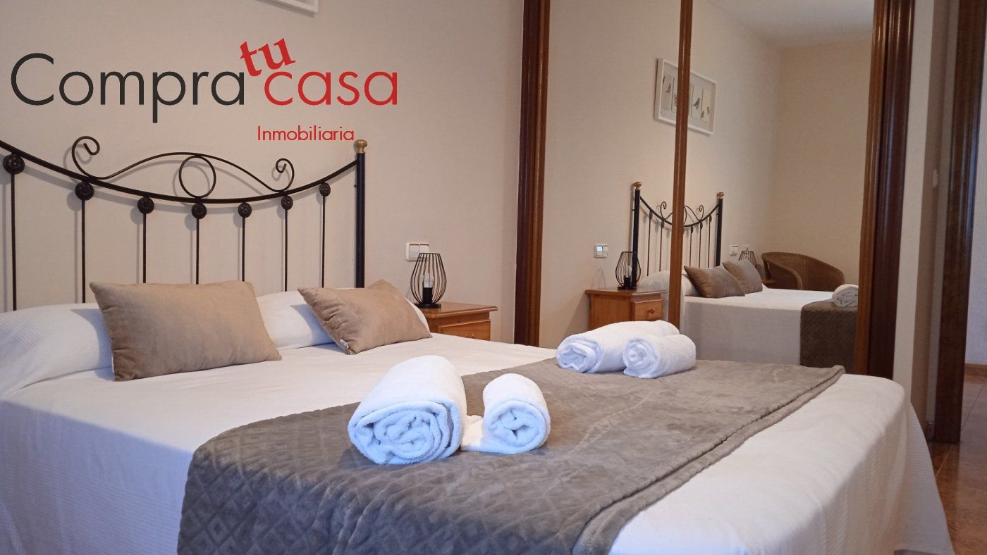 Accedemos al interior del inmueble que nos ofrece en la planta principal, DOS DORMITORIOS DOBLE con armarios empotrados, un CUARTO DE BAÑO completo, UNA MAGNÍFICA cocina amueblada y equipada con una bonita ISLA para mayor comodidad a la hora de realizar las elaboraciones de las comidas diarias.