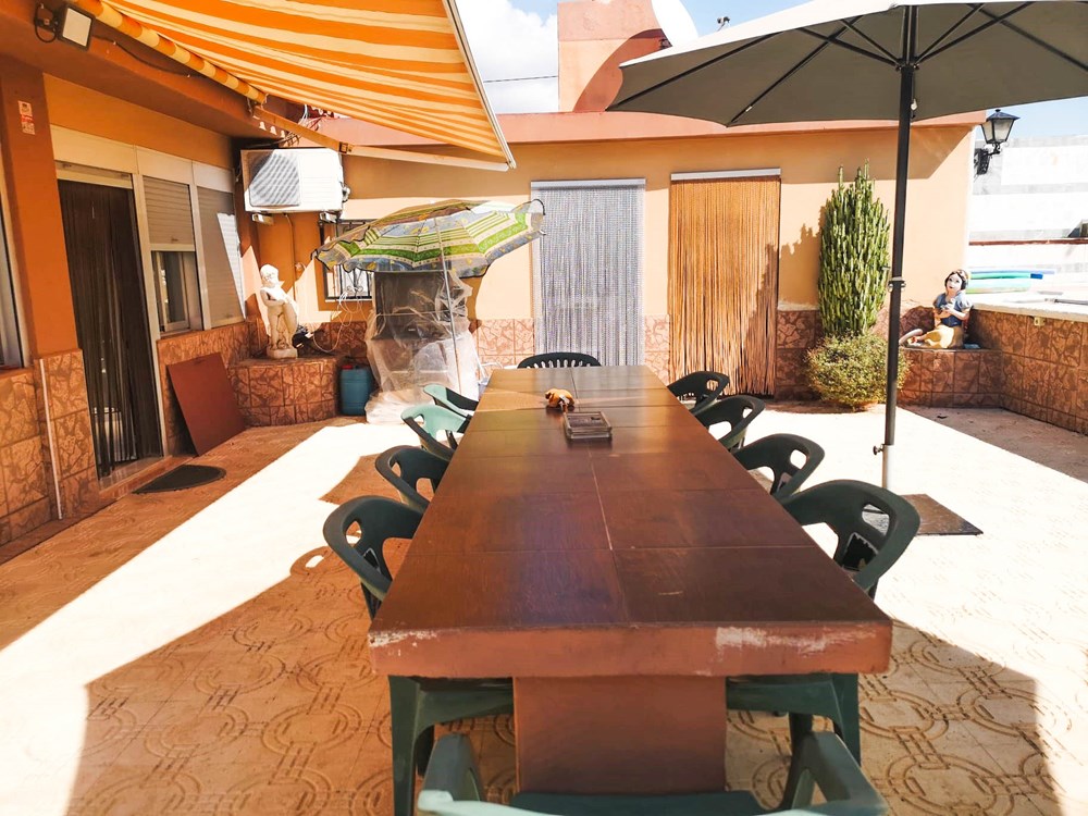Si estás buscando mucho espacio, aire libre y tranquilidad... ¡Esta vivienda es para ti! La casa está compuesta por un amplio salón, dos comedores, tres cocinas grandes, cinco habitaciones espaciosas y tres baños completos. Dispone de luz y agua de pozo (hay dos pozos, uno para la casa y el otro para la huerta). Además, cuenta con una bonita y refrescante piscina, varias cocheras, un corral y una parcela enorme de 2.000 m2.