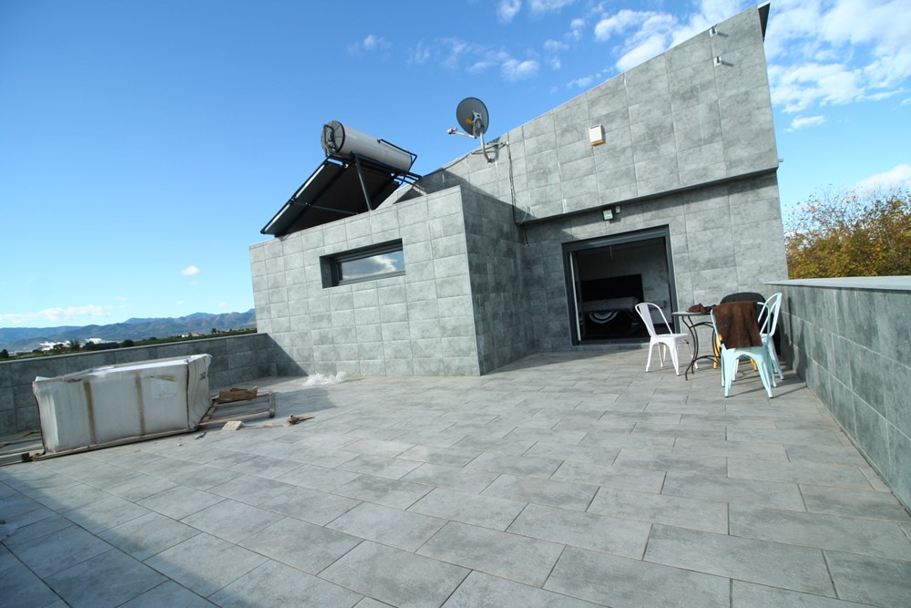 Chalet en partida madrigal construido con primeras calidades. Suelos de porcelánico de Porcelanosa. Domótica y cámaras de seguridad instaladas. Cocina con electrodomésticos integrados. Tres dormitorios en suite con baño completo y dormitorio en planta superior con sauna turca y amplísima terraza. Totalmente amueblado .Calefacción central. Placas solares valoradas en 50.000€. Construcción gemela por terminar adosada a la vivienda.