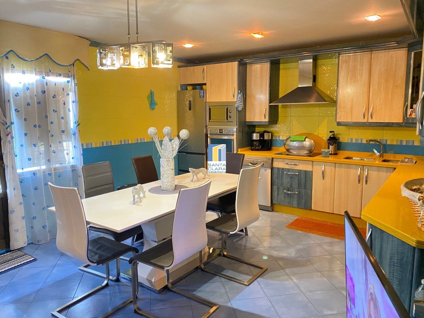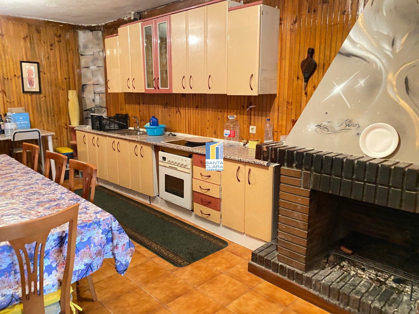En la planta baja se halla una cocina con chimenea y un amplio garaje que da cabida para 5 coches.