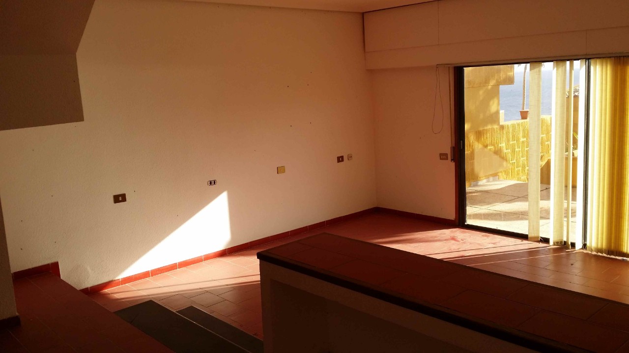 La vivienda tipo Duplex, cuenta en planta baja con cocina independiente que conecta con una amplia solana, un baño completo con plato de ducha, un pequeño distribuidor que da acceso al salón comedor distribuido en dos ambientes, separados por una barra y unos escalones. Desde el salón comunicamos con la fantástica terraza exterior con magníficas vistas al mar, que a su vez y a través de una pequeña escalera, da acceso a las zonas comunes de la urbanización.