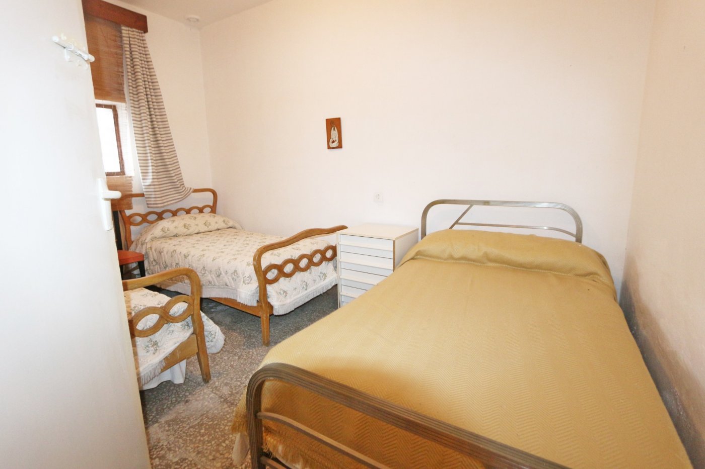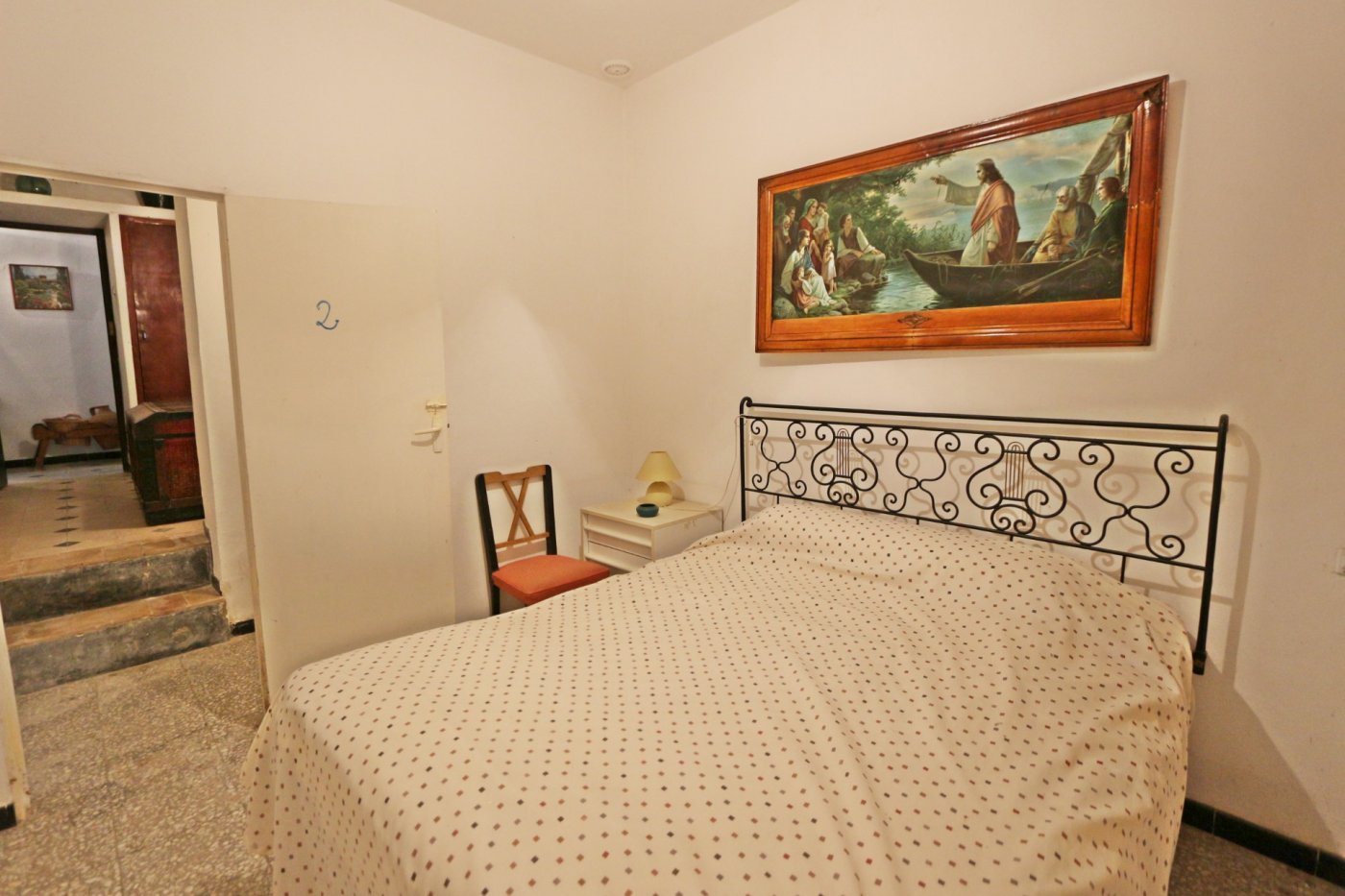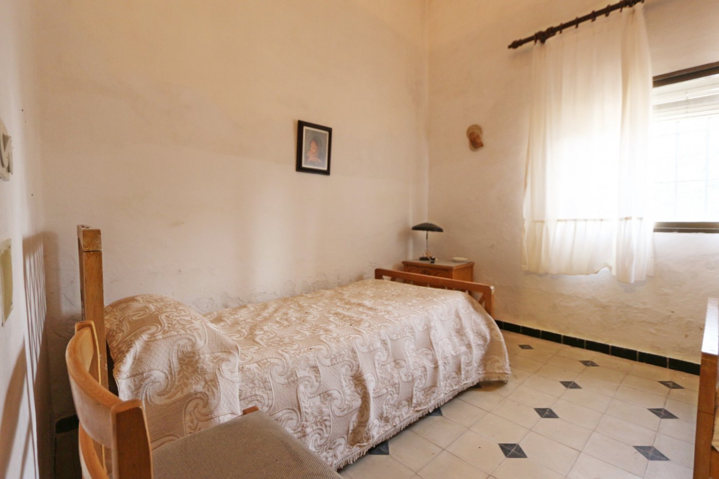 2. La segunda, y separada de la primera por un gran patio, encontramos la casa del guarda de unos 100 metros cuadrados. Consta de salón con cocina abierta, 3 habitaciones comunicadas entre sí y un baño al fondo.