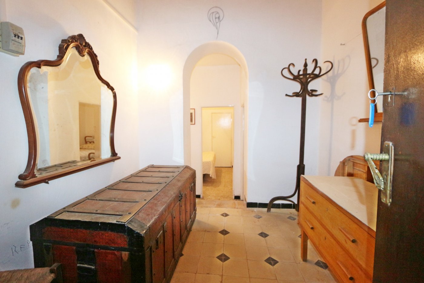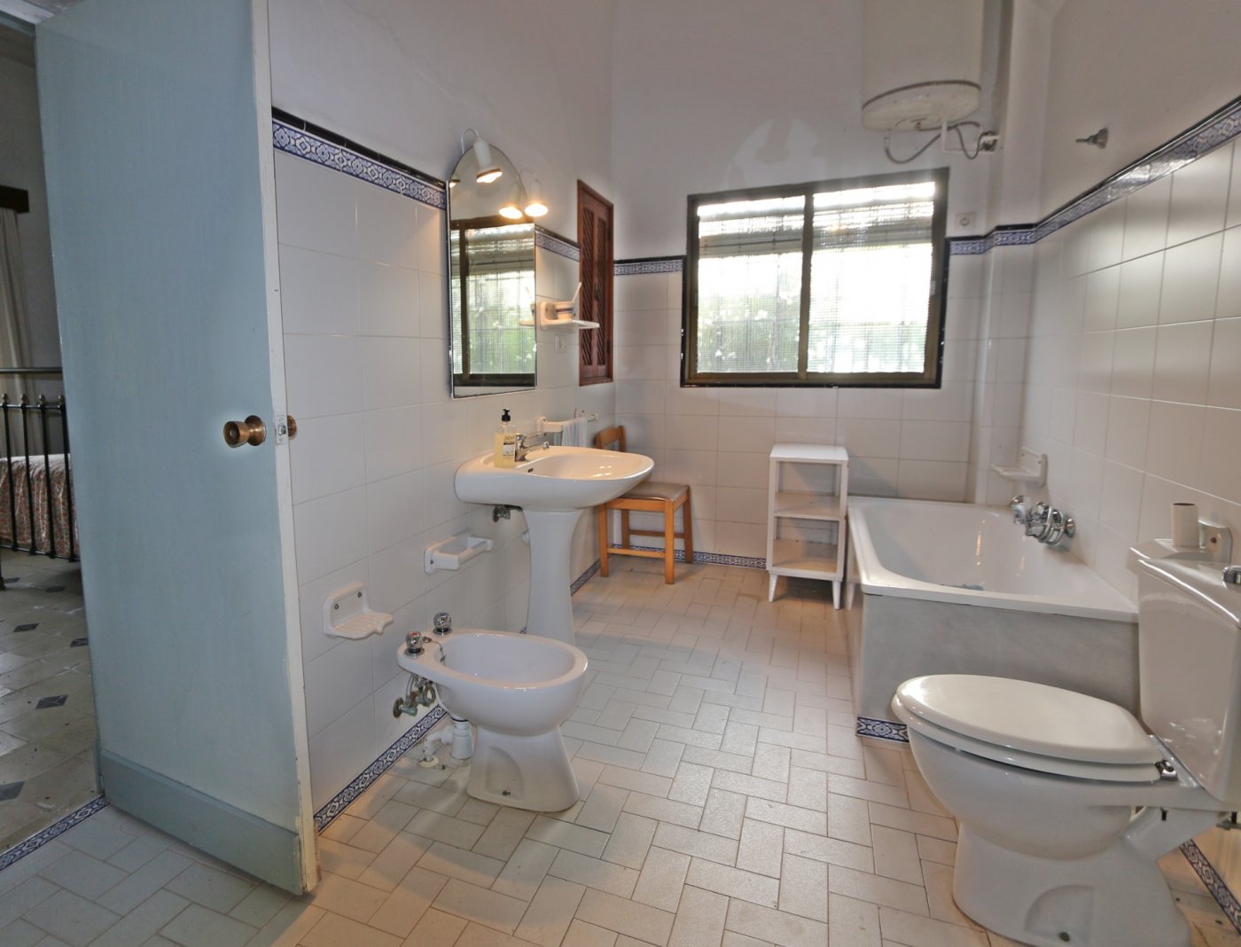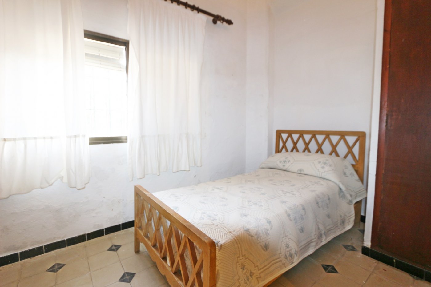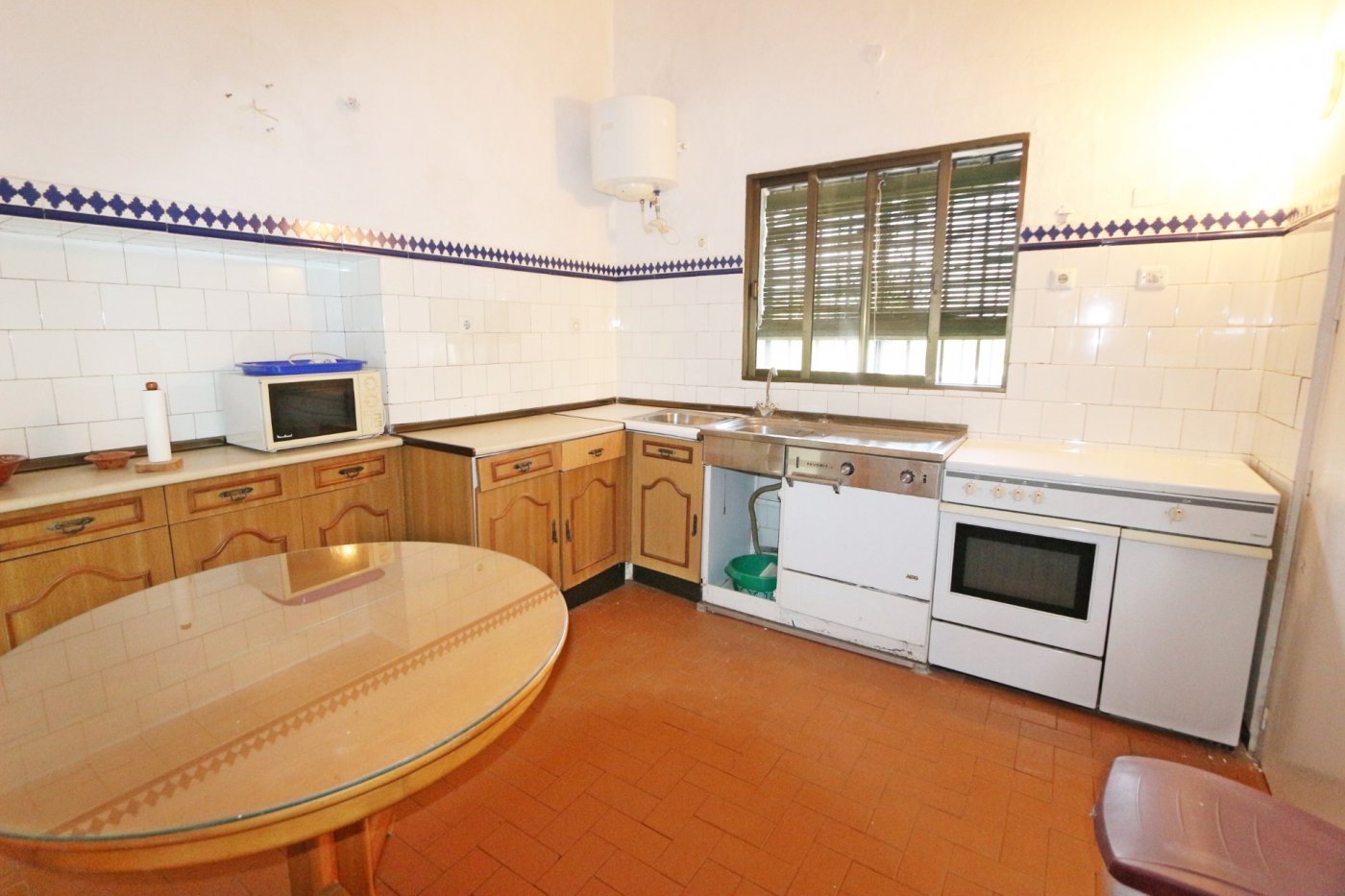 2. La segunda, y separada de la primera por un gran patio, encontramos la casa del guarda de unos 100 metros cuadrados. Consta de salón con cocina abierta, 3 habitaciones comunicadas entre sí y un baño al fondo.