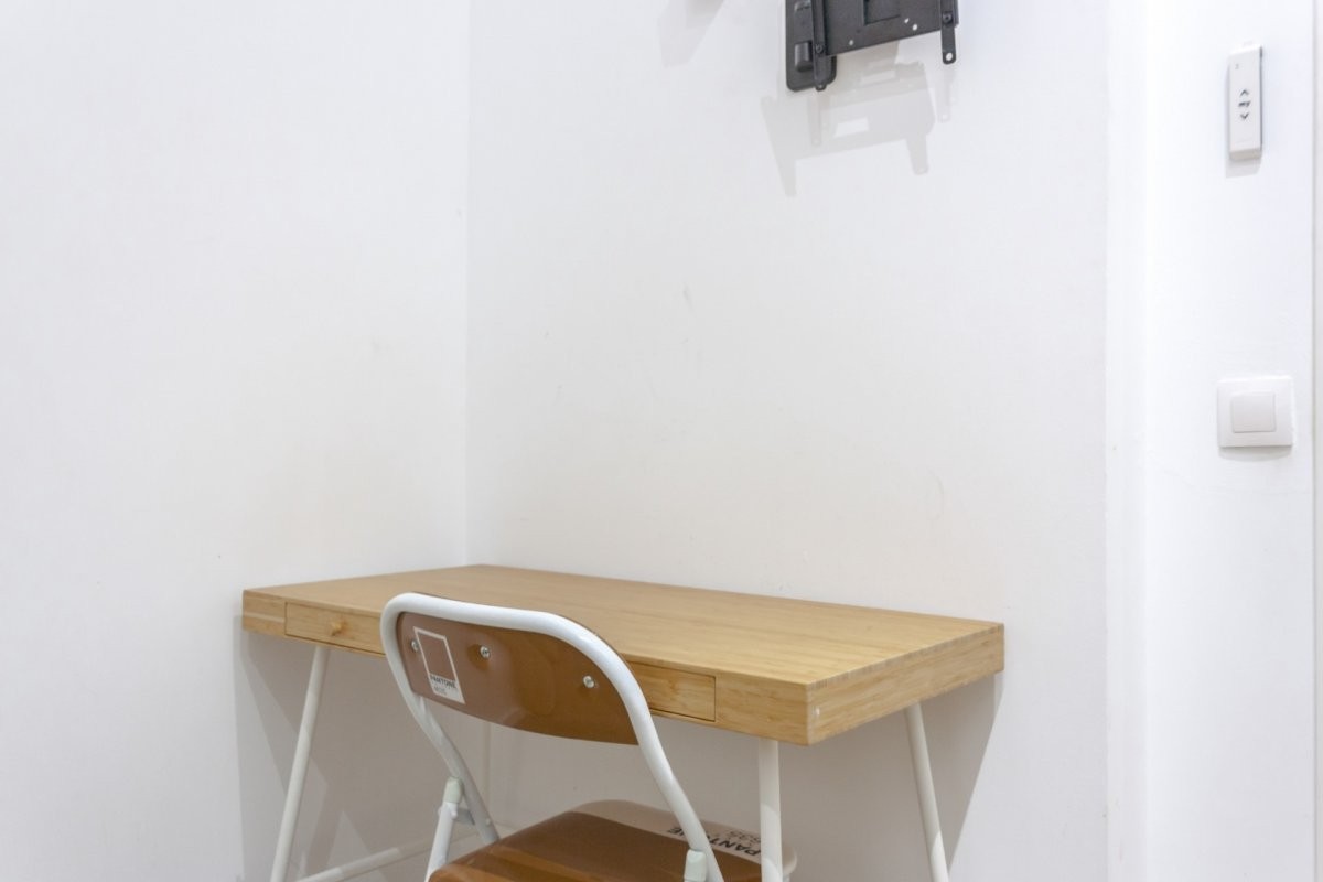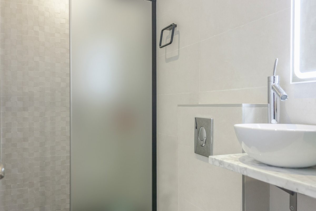 Cuenta con 68m2 construidos, dos habitaciones dobles muy amplias y exteriores, una con balcón y la otra con terraza de 12 metros, un baño completo con suelo de piedra natural y grifería de alto standing. Los suelos son de parquet AC5.