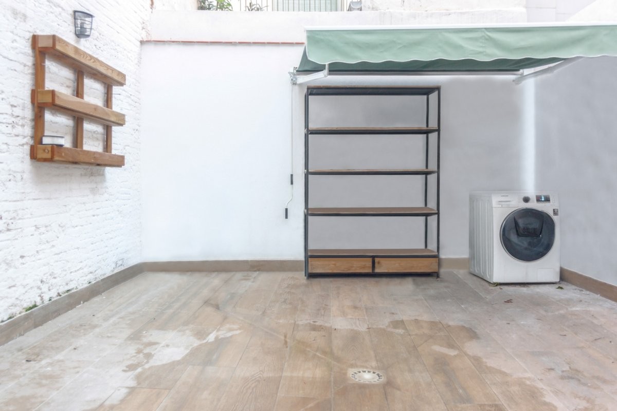 Cuenta con 75m2 construidos, una amplia habitación exterior, un baño completo y una cocina americana totalmente equipada con electrodomésticos de alta gama que comunica con la amplia y luminosa sala de estar. Además, en esta planta se encuentra un patio muy agradable y con mucho sol de más de 20 metros donde está la zona habilitada de aguas.