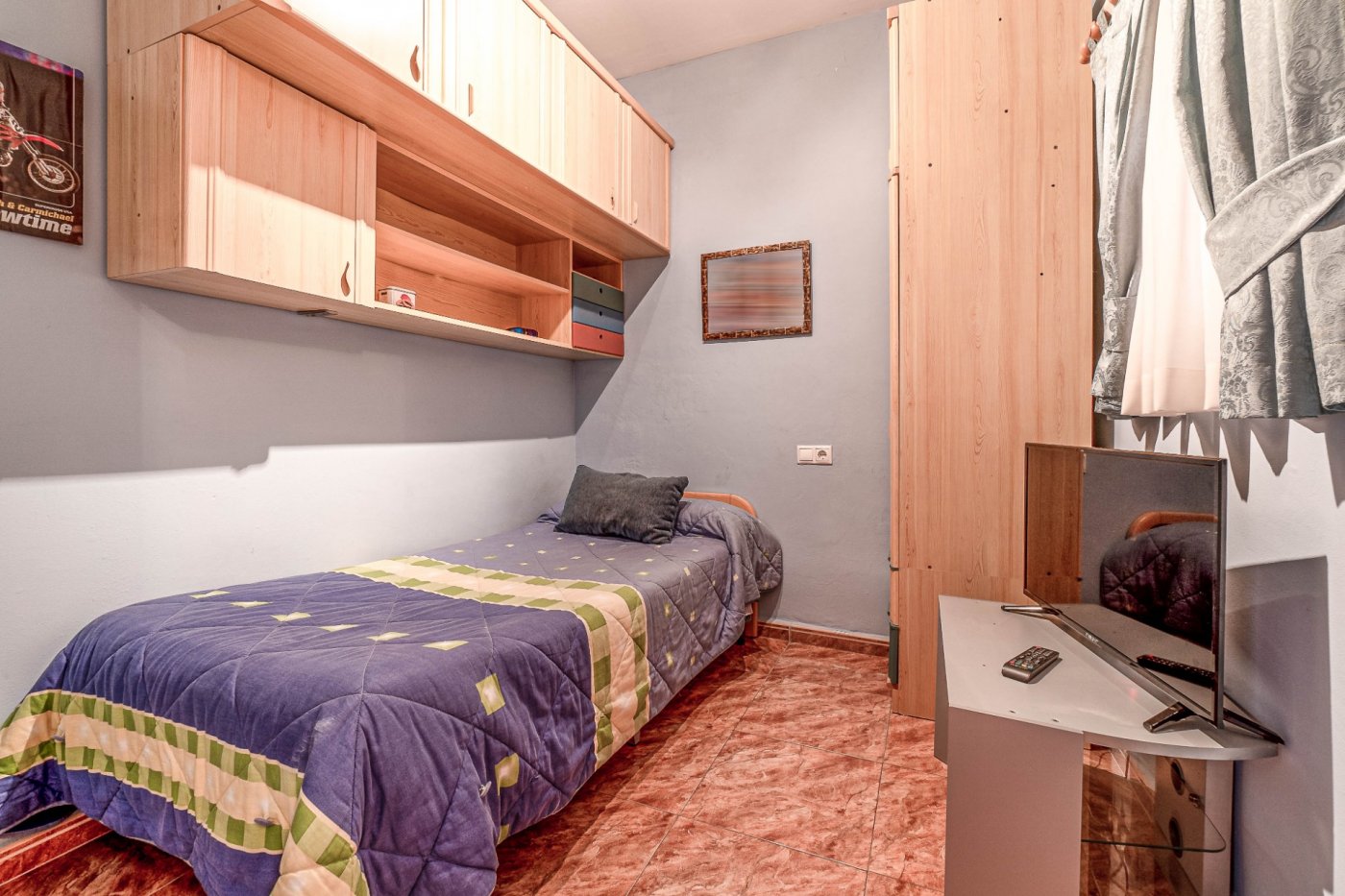 Esta casita tiene 4 dormitorios más un despacho. Al tener dos entradas accedemos desde la calle desde la planta central y desde la planta baja por la calle de atrás. Es una casa hecho de hace una década y está en perfecto estado.
