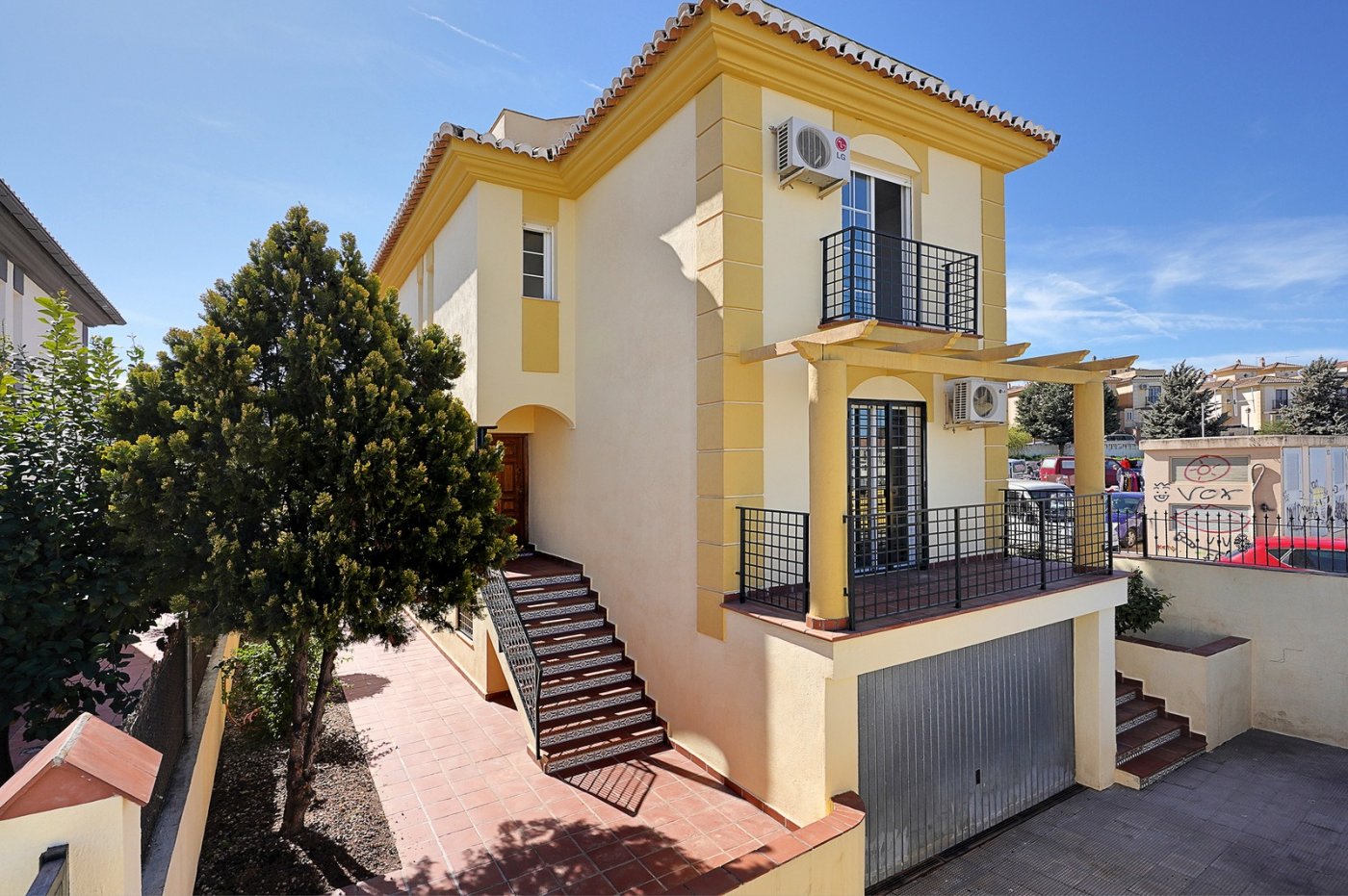Chalet independiente a la entrada de la Zubia, buena y rápida comunicación con la autovía y Granada, en una zona de gran crecimiento como es la zona sur con el PTS. Sobre parcela de 310m, según catastro, en buen estado de conservación Se divide en planta semisótano mas dos plantas y terraza solárium. En la planta semisótano se ha modificado para hacerlo vivienda, tenemos salón con chimenea y cocina, baño y dormitorio, además de almacenaje. Se ha suprimido el garaje pero se podría recuperar, aun así, tenemos zona de aparcamiento en la entrada. En la planta principal tenemos salón independiente, cocina independiente con salida a patio, despacho y baño. En la planta alta tienen tres dormitorios y dos baños. En el torreón tiene terraza con vistas a la sierra, a Granada y a la vega. Equipos de aire acondicionado, calefacción por gas oil, puertas en color roble, piscina y barbacoa.