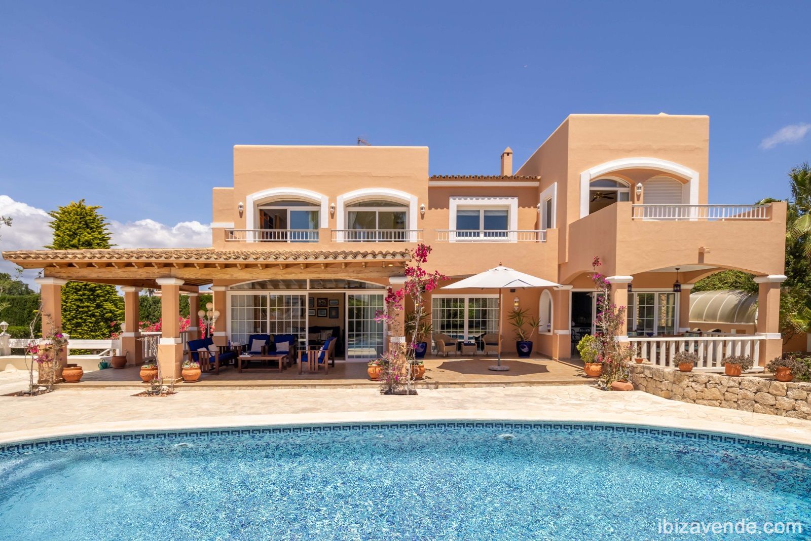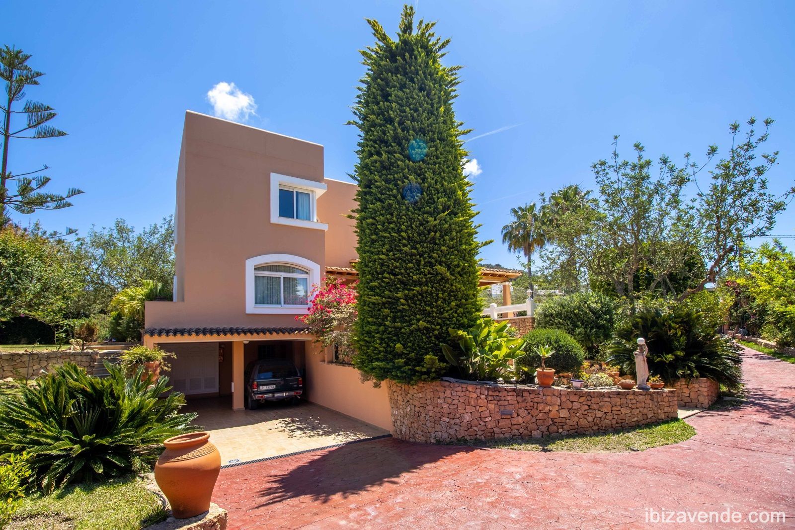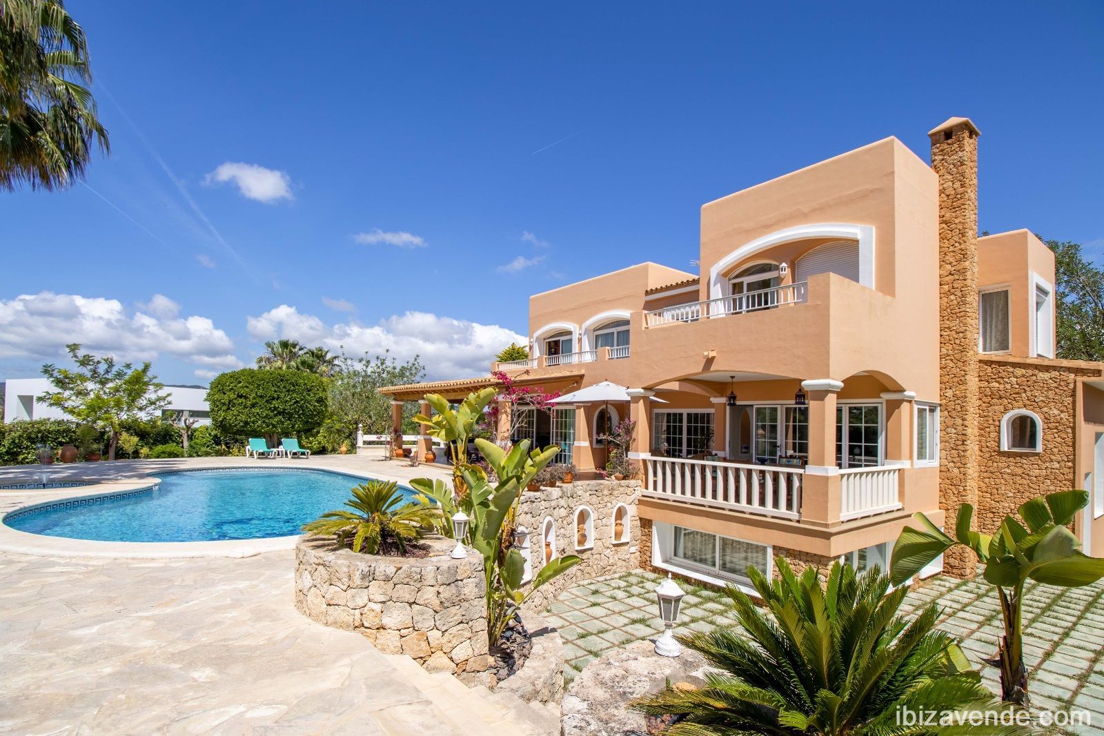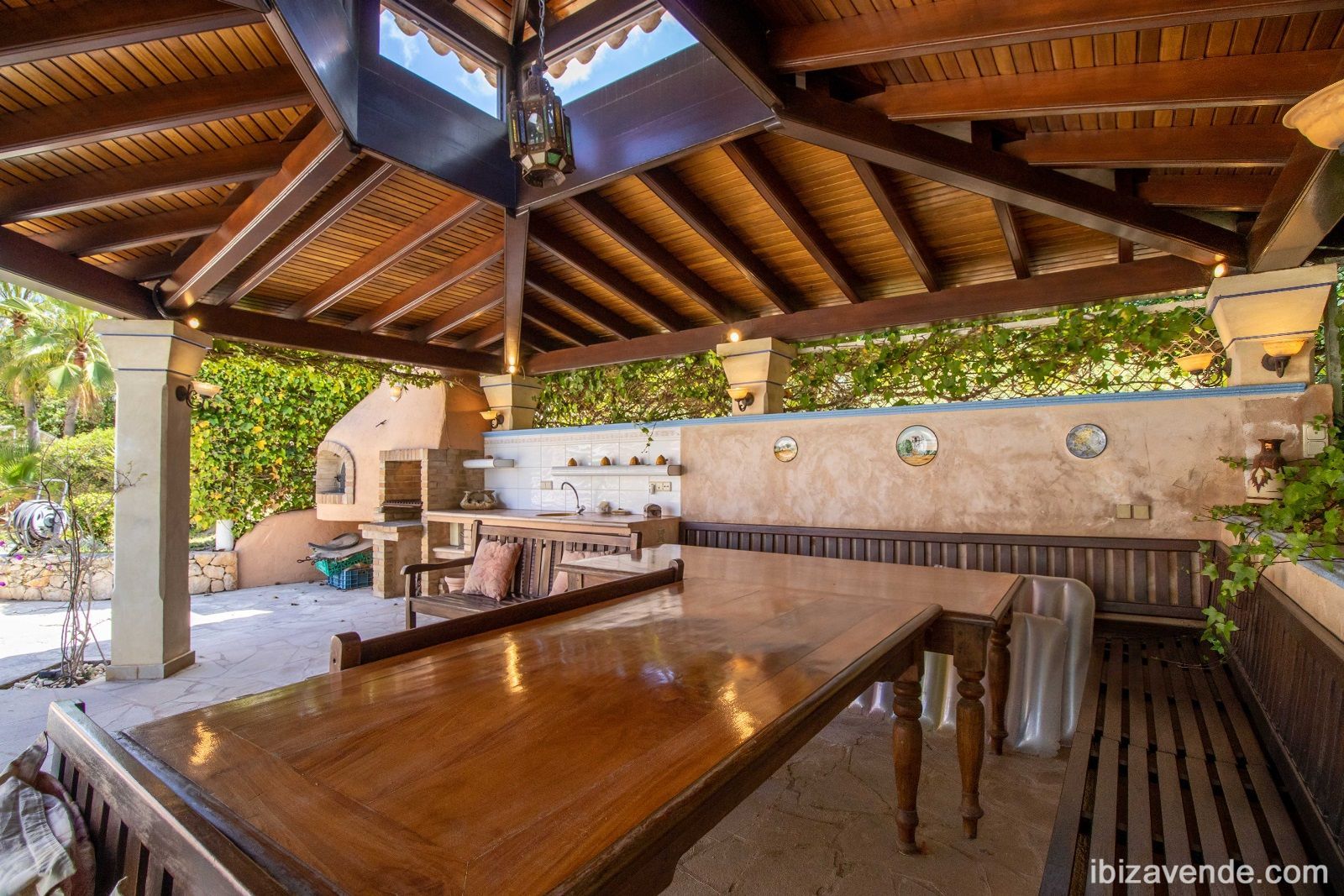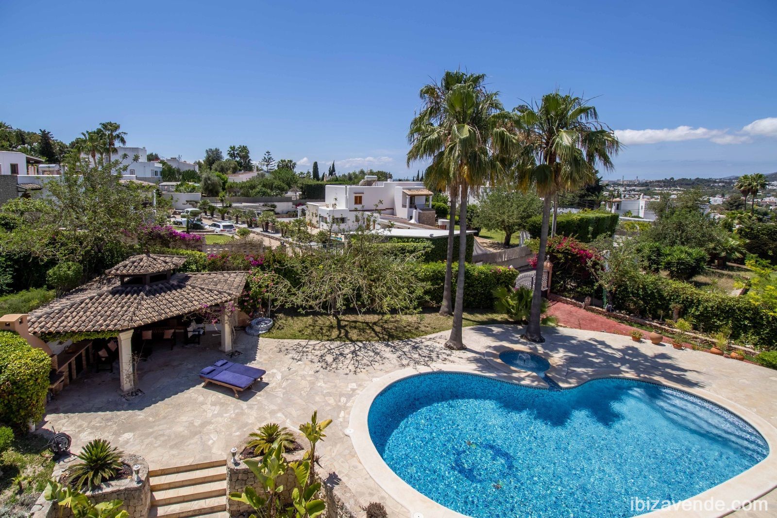 Magnifica propiedad en Can Lluis cerca de Jesús con apartamento de invitados. La villa está situada en una parcela vallada de 2002 m2 con una superficie construida de 740 m2 dividida en dos niveles. Con cinco dormitorios, cinco baños, gran cocina espaciosa con todos los electrodomésticos, salón - y comedor con chimenea y acceso directo a la zona exterior. Esta cuenta con una gran piscina, garaje para dos coches, barbacoa con zona de almuerzo cubierta y otra terraza. La propiedad está muy bien cuidada y en perfecto estado. También dispone de calefacción central, A/A, sauna, bodega y sistema de alarma. Can Lluis es una zona residencial digna, tranquila y familiar. Está a sólo unos minutos en coche del encantador pueblo de Jesús, con todos los servicios comerciales, la playa de Talamanca o el puerto de Botafoc. El campo de golf también está a 10 minutos en coche. Contacte nos via E-Mail, estaremos encantados de concertar una cita para ver con usted.Tenemos muchas más casas, apartamentos, villas, fincas, locales comerciales y terrenos en alquiler y venta en la isla. Gracias por considerarnos como su agencia inmobiliaria en Ibiza.