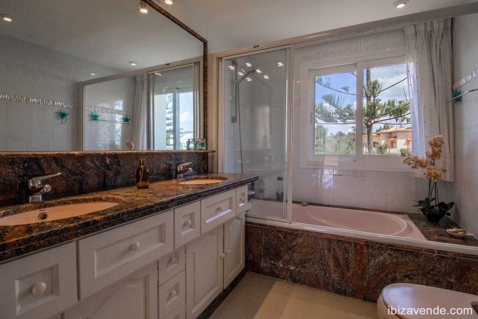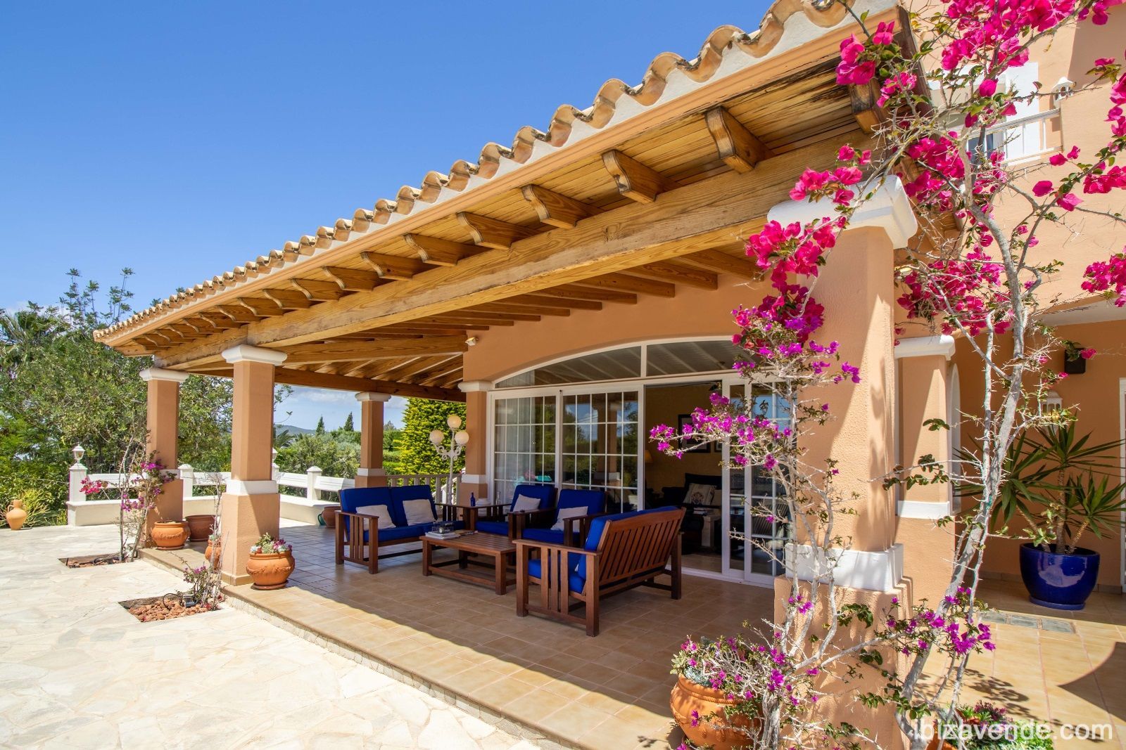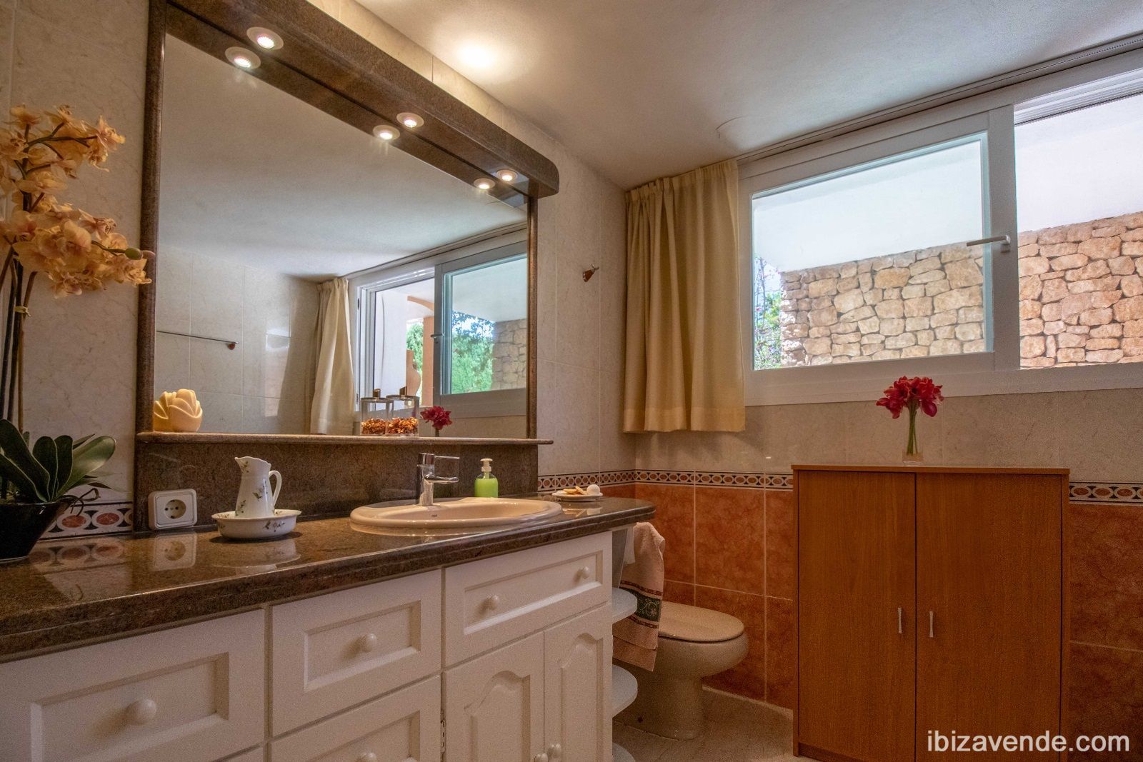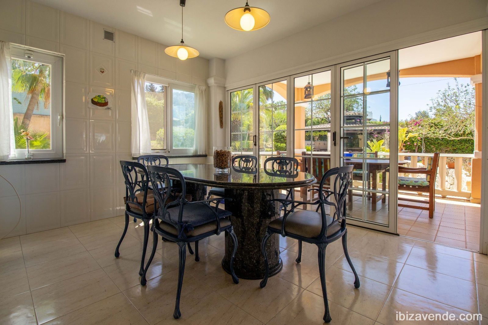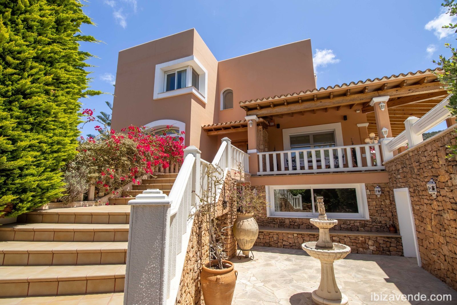Magnifica propiedad en Can Lluis cerca de Jesús con apartamento de invitados. La villa está situada en una parcela vallada de 2002 m2 con una superficie construida de 740 m2 dividida en dos niveles. Con cinco dormitorios, cinco baños, gran cocina espaciosa con todos los electrodomésticos, salón - y comedor con chimenea y acceso directo a la zona exterior. Esta cuenta con una gran piscina, garaje para dos coches, barbacoa con zona de almuerzo cubierta y otra terraza. La propiedad está muy bien cuidada y en perfecto estado. También dispone de calefacción central, A/A, sauna, bodega y sistema de alarma. Can Lluis es una zona residencial digna, tranquila y familiar. Está a sólo unos minutos en coche del encantador pueblo de Jesús, con todos los servicios comerciales, la playa de Talamanca o el puerto de Botafoc. El campo de golf también está a 10 minutos en coche. Contacte nos via E-Mail, estaremos encantados de concertar una cita para ver con usted.Tenemos muchas más casas, apartamentos, villas, fincas, locales comerciales y terrenos en alquiler y venta en la isla. Gracias por considerarnos como su agencia inmobiliaria en Ibiza.
