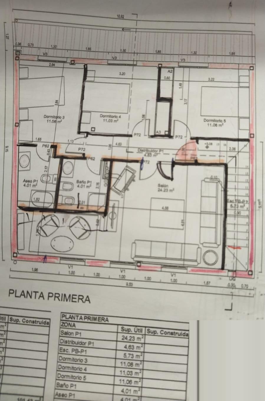 Por otro lado, en la primera planta contamos con un espacioso salón, perfecto para disfrutar de momentos de relax o entretenimiento en familia, super soleado gracias a su ORIENTACIÓN SUR. También nos encontramos tres dormitorios dobles, todos ellos AMPLIOS Y LUMINOSOS. Además, en esta planta se encuentran dos cuartos de baño completos con plato de ducha, uno de ellos en suite en el dormitorio principal, lo que proporciona mayor COMODIDAD Y PRIVACIDAD.