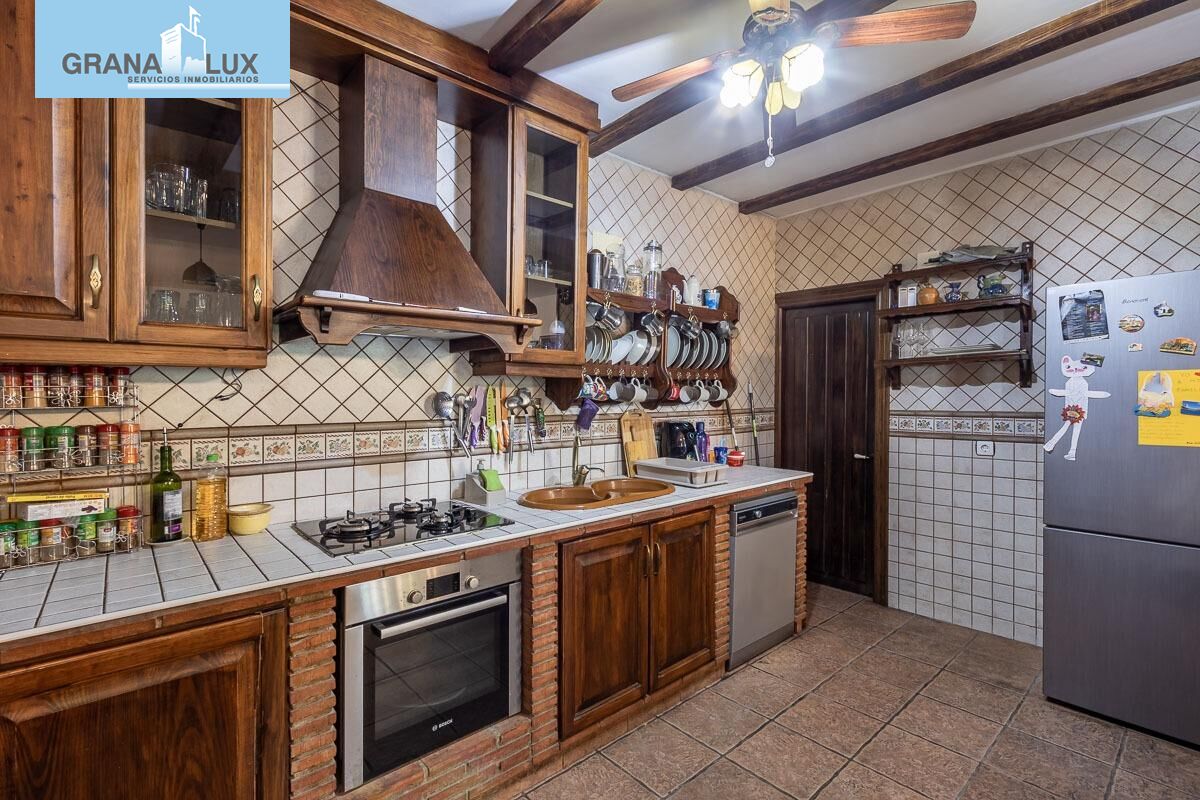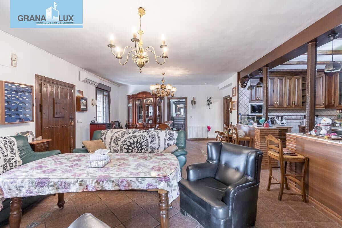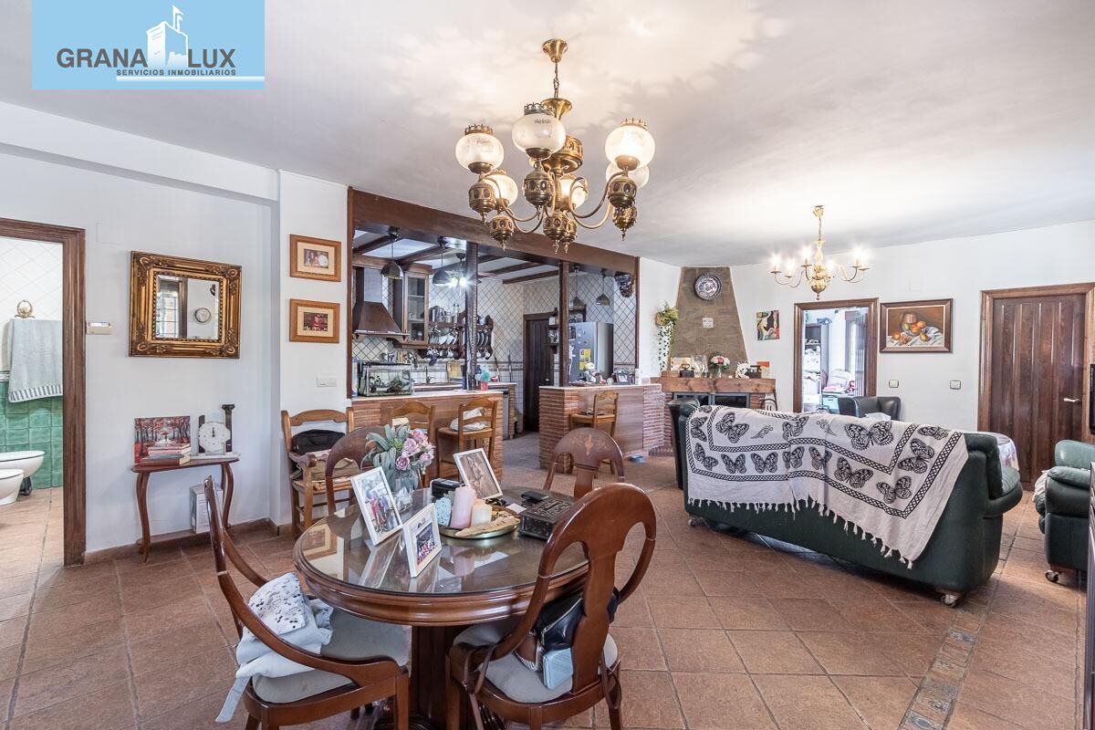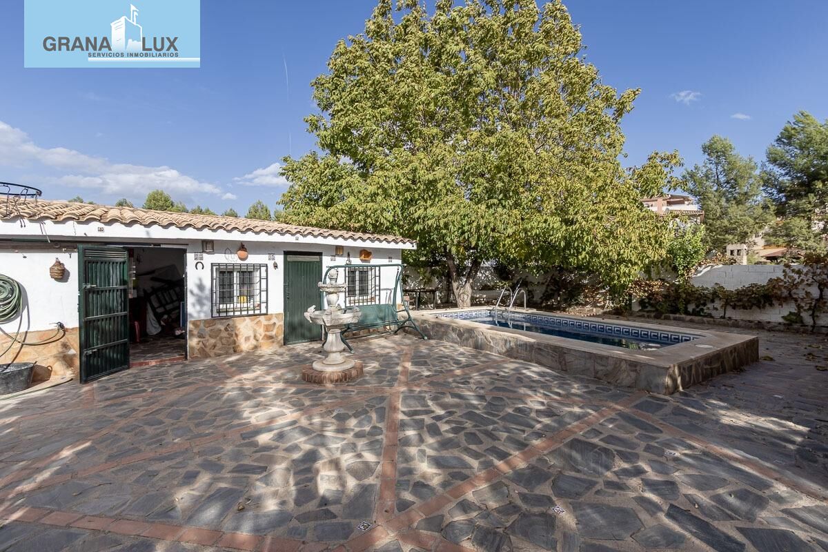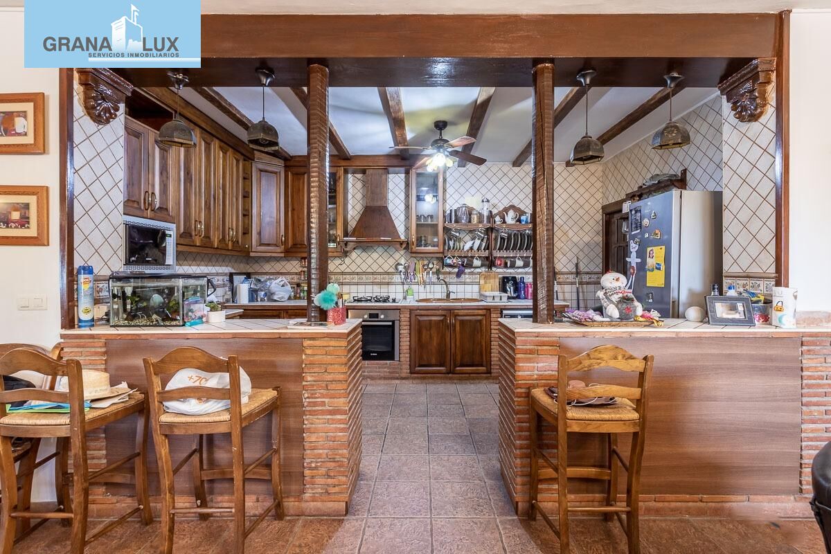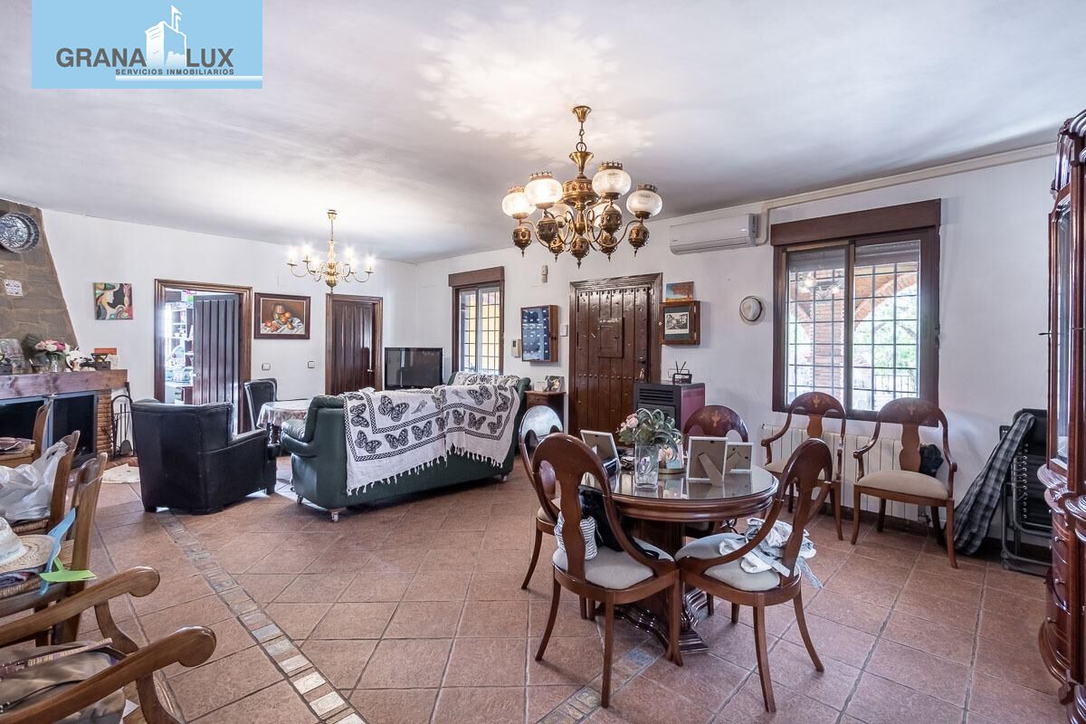 En venta, Chalet en Peligros zona Fonseca, 3 dormitorios, dormitorio principal con baño en suite y vestidor. 2 baños, cocina tipo americana amueblada y equipada, habitación tipo trastero. Gran salón comedor con su chimenea y además una estufa de pellets, aire acondicionado con bomba de frio y calor en el salón comedor. Propiedad para Entrar a vivir. Patio. 2 trasteros. piscina propia. Parcela de 1.768m2.