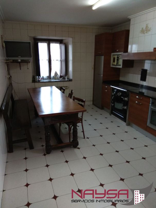 Casa de 3 plantas distribuida de la siguiente manera; En la planta baja se encuentra la cocina, salón, 1 cuarto de baño, 1 dormitorio, cuadra de 100m2 y encima pajar de 60m2. En la planta primera tenemos otra cocina, 2 dormitorios, salón y 1 cuarto de baño. En la planta segunda disponemos de otros 3 dormitorios y 1 cuarto de baño. Dispone de calefacción individual de gasoil. Tiene cuadra de 100m2, un pajar encima de 60m2 y un patio de 50m2. Garaje. Tejado arreglado.