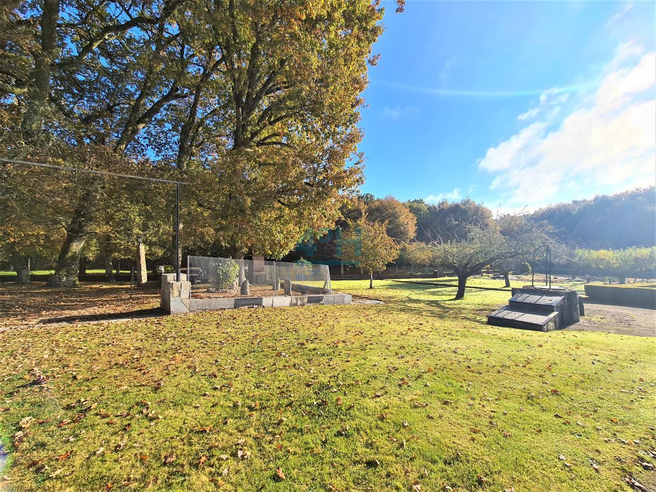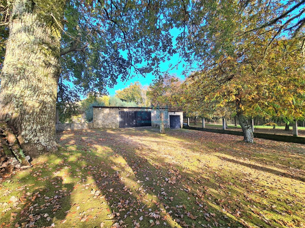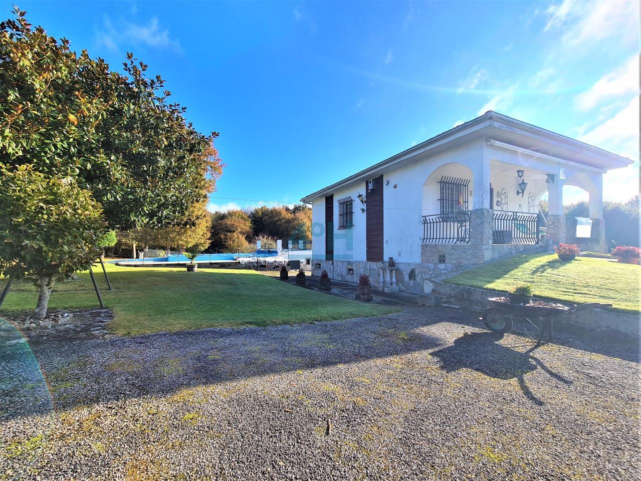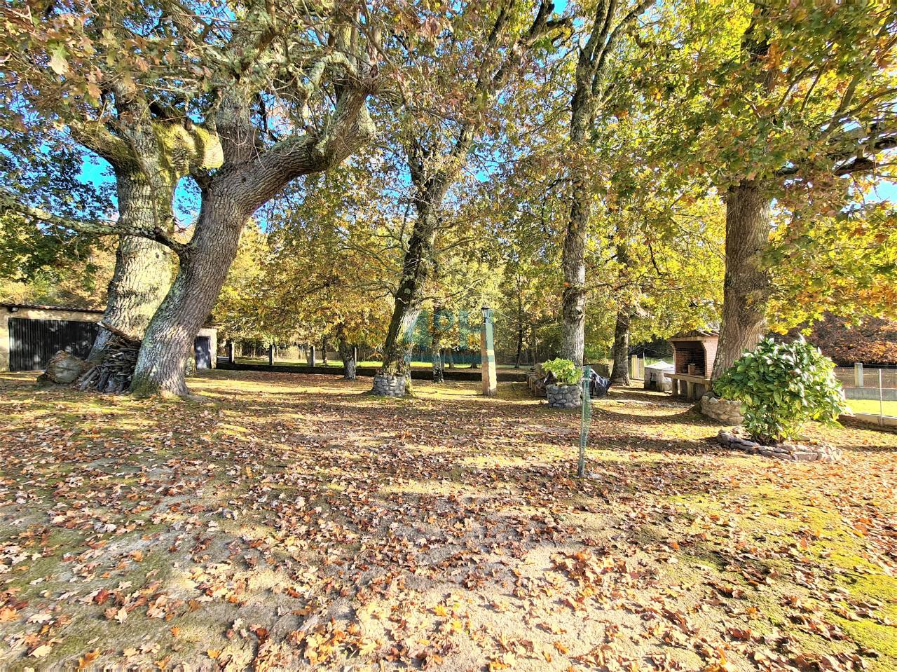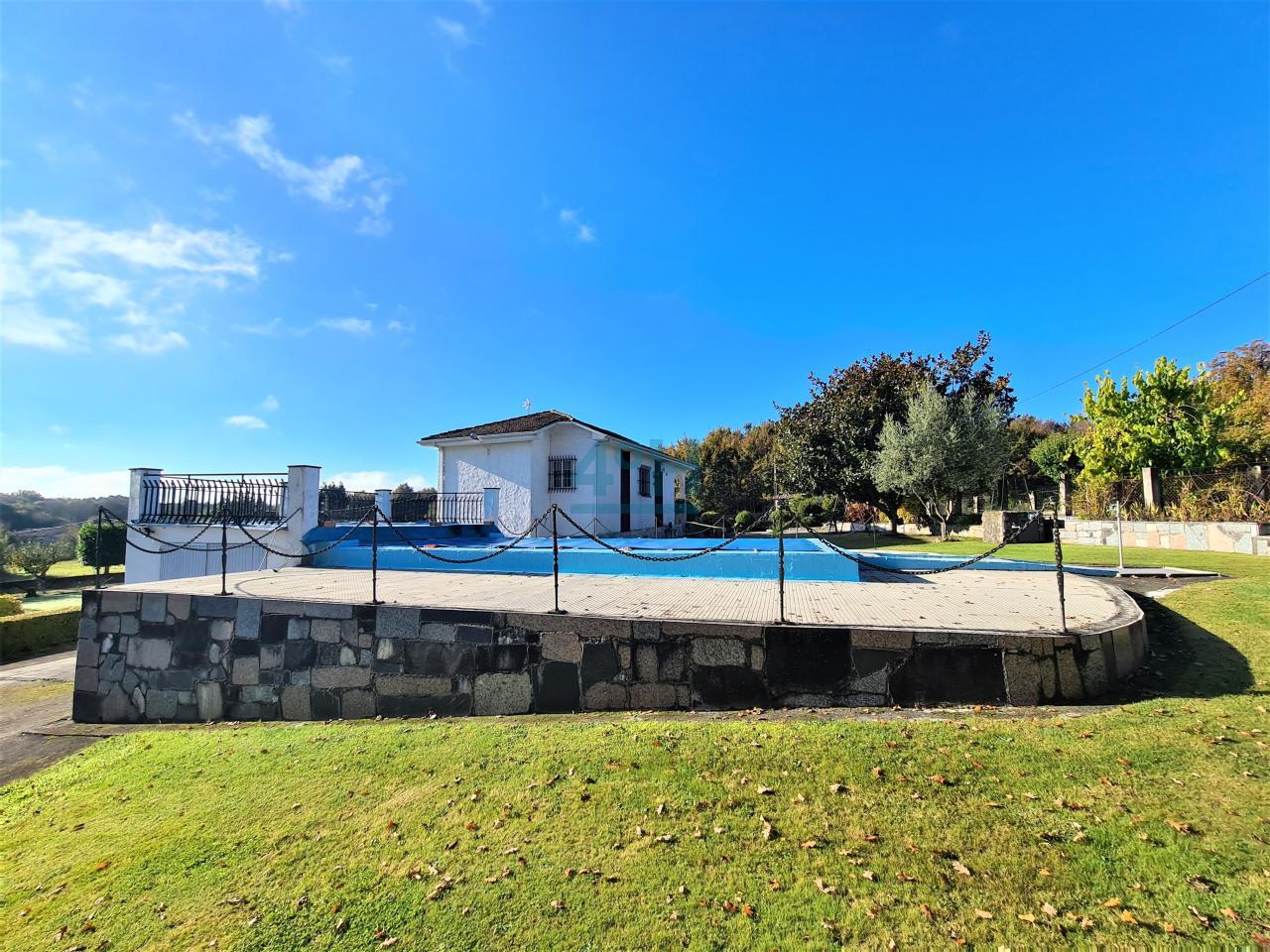 La casa se encuentra ubicada en una finca de 6.500 m2 con riego automático (30 difusores), que cuenta con piscina (con calentador de agua y depuradora ubicados en un galpón de 24 m2), fuente, zona de cenador y barbacoa, dos pozos (uno artesano y otro de barrena) y un galpón de 90 m2 con garaje para dos coches y con zona de almacenamiento para maquinaria.