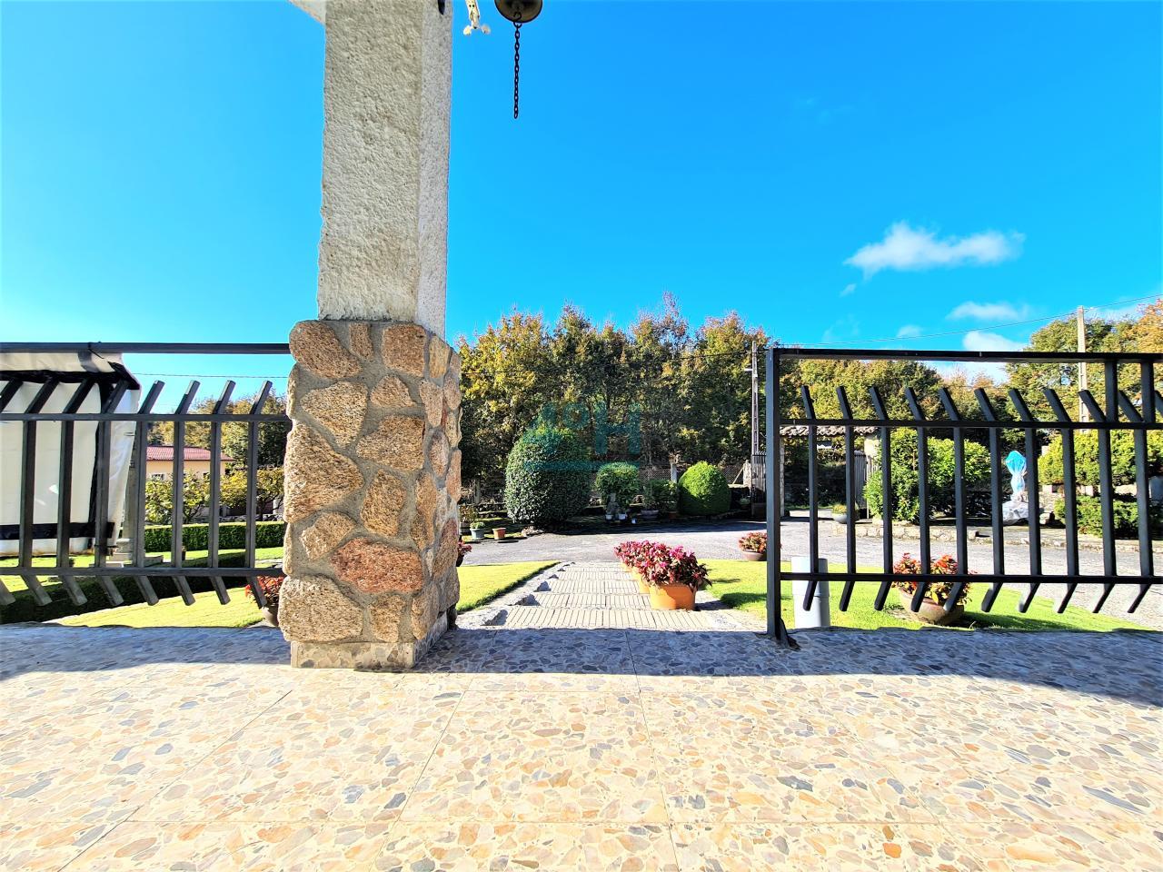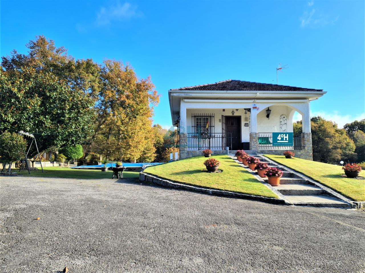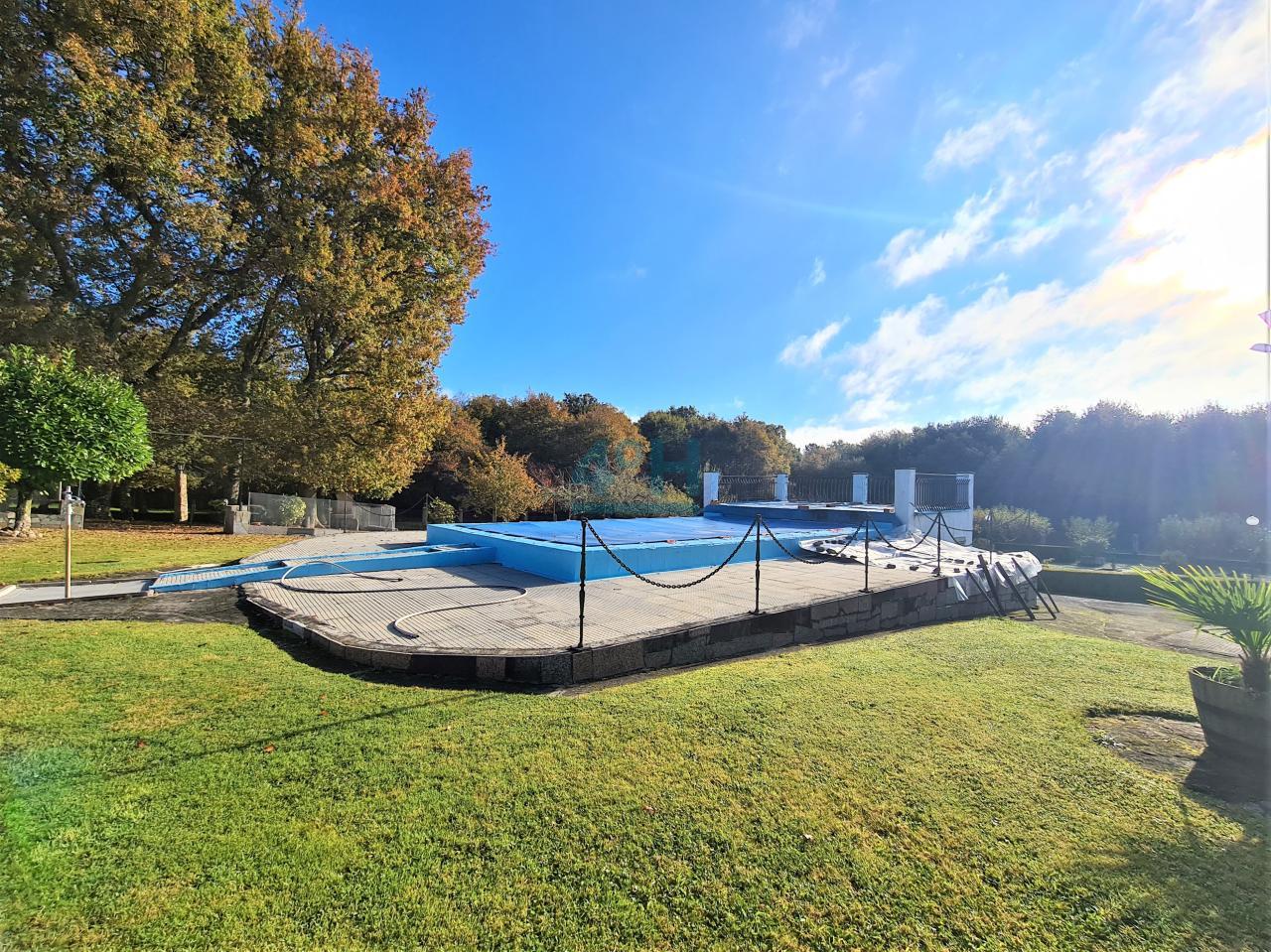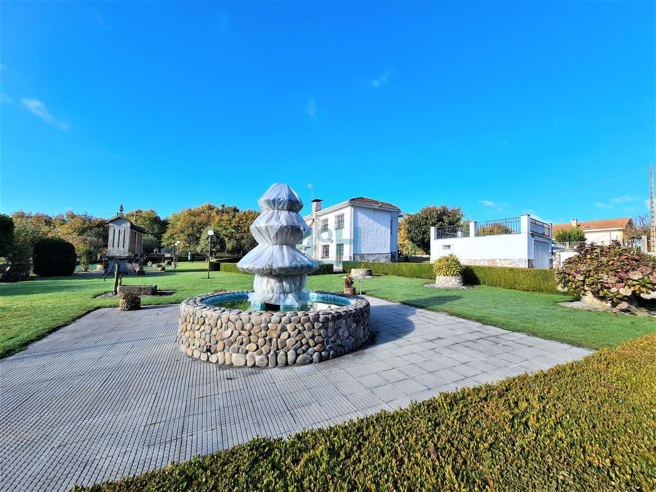La casa se encuentra ubicada en una finca de 6.500 m2 con riego automático (30 difusores), que cuenta con piscina (con calentador de agua y depuradora ubicados en un galpón de 24 m2), fuente, zona de cenador y barbacoa, dos pozos (uno artesano y otro de barrena) y un galpón de 90 m2 con garaje para dos coches y con zona de almacenamiento para maquinaria.