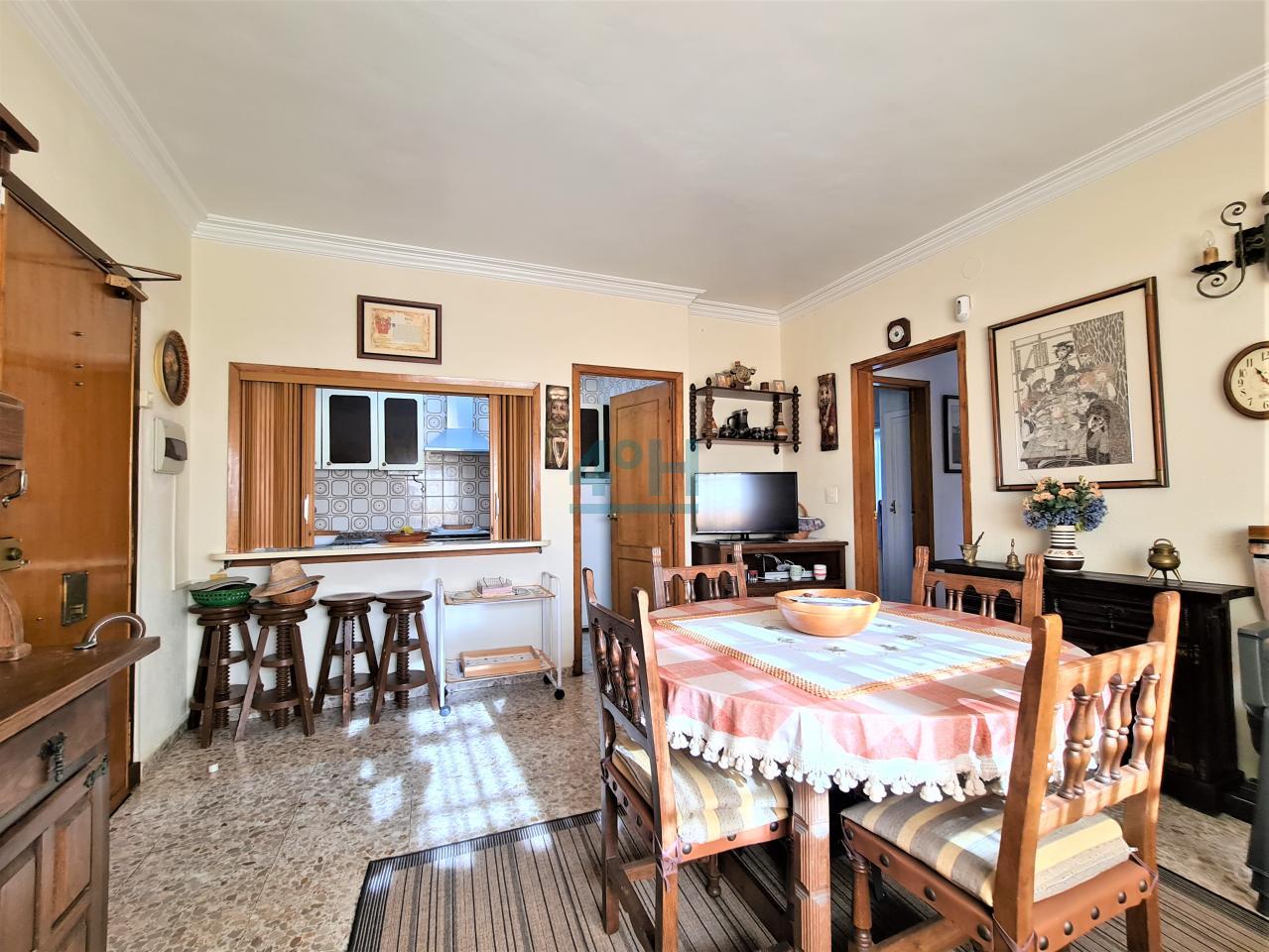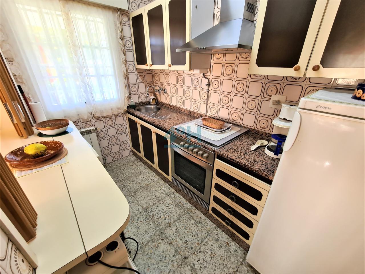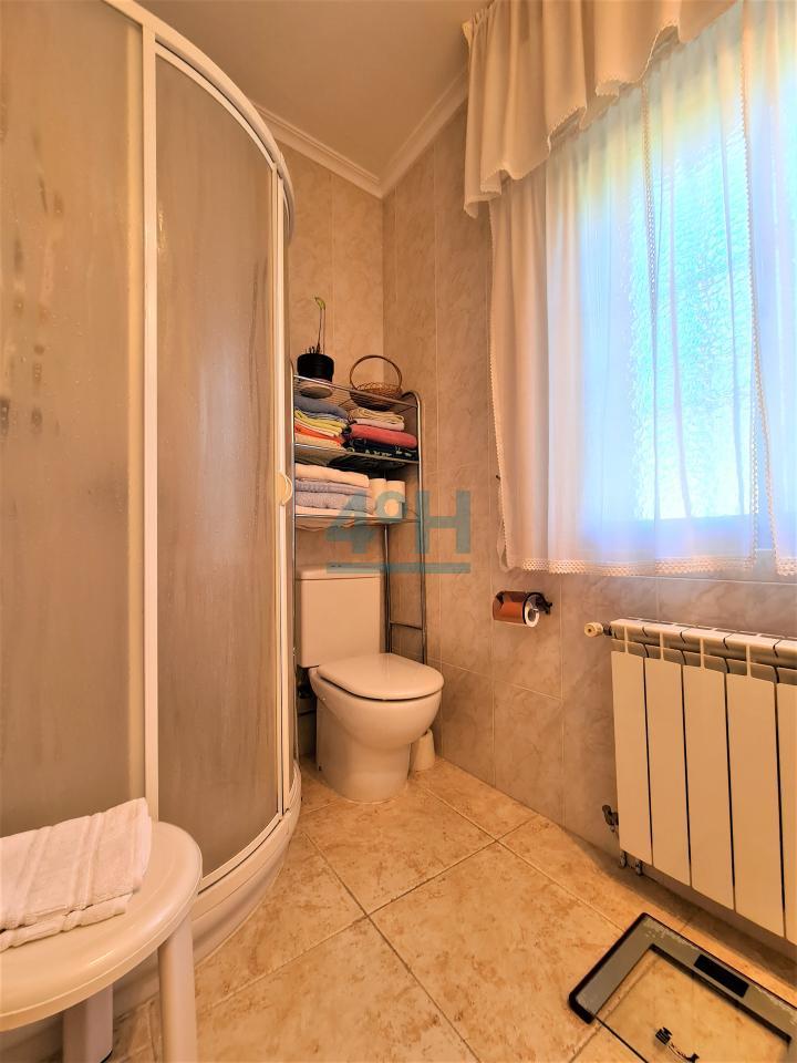 Distribuida en dos plantas. en la planta baja tenemos una zona de caldera (depósito de 800L.), garaje, zona de bodega, aseo y un salón-comedor con leñera. En la planta superior (acceso por el exterior) tiene una cocina independiente amueblada con electrodomésticos, salón con chimenea, tres dormitorios (con armarios empotrados) y un baño.