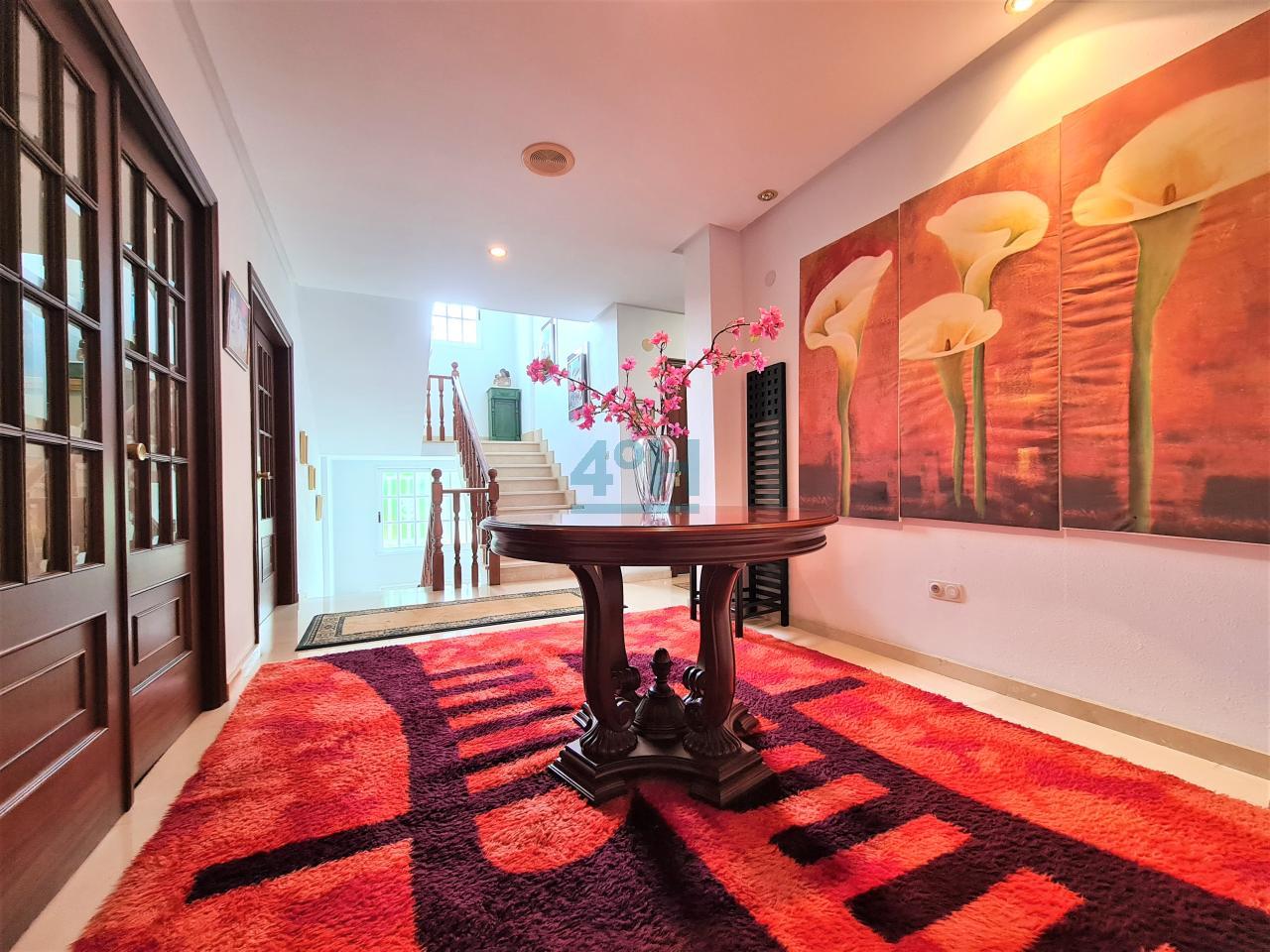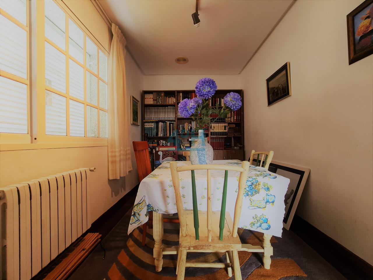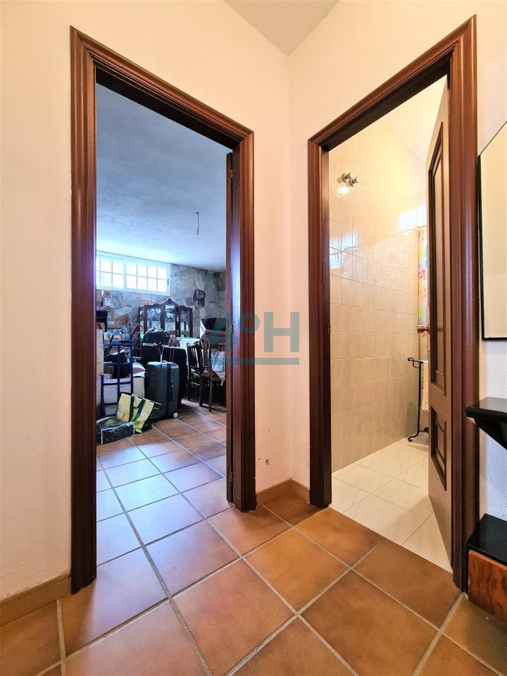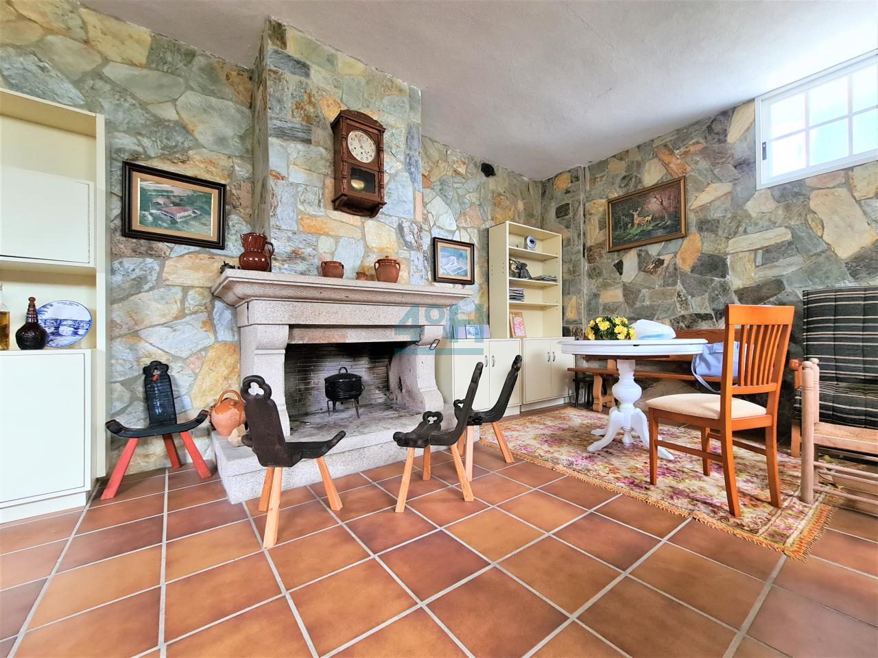 Planta primera: Hall recibidor, salón con dos comedores, un dormitorio, baño completo, cocina amueblada, zona de lavandería y salita con chimenea y acceso a amplio balcón.