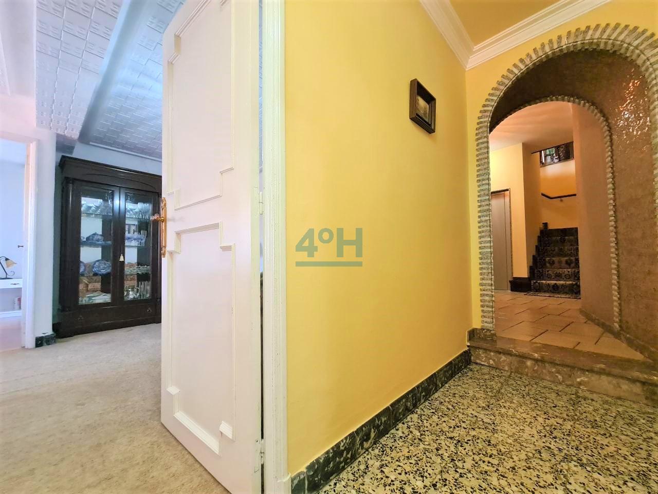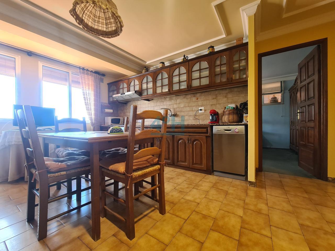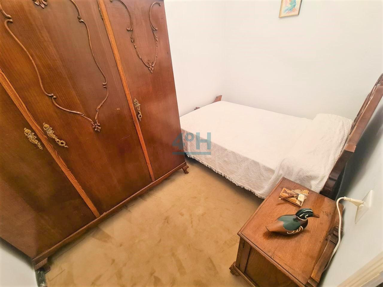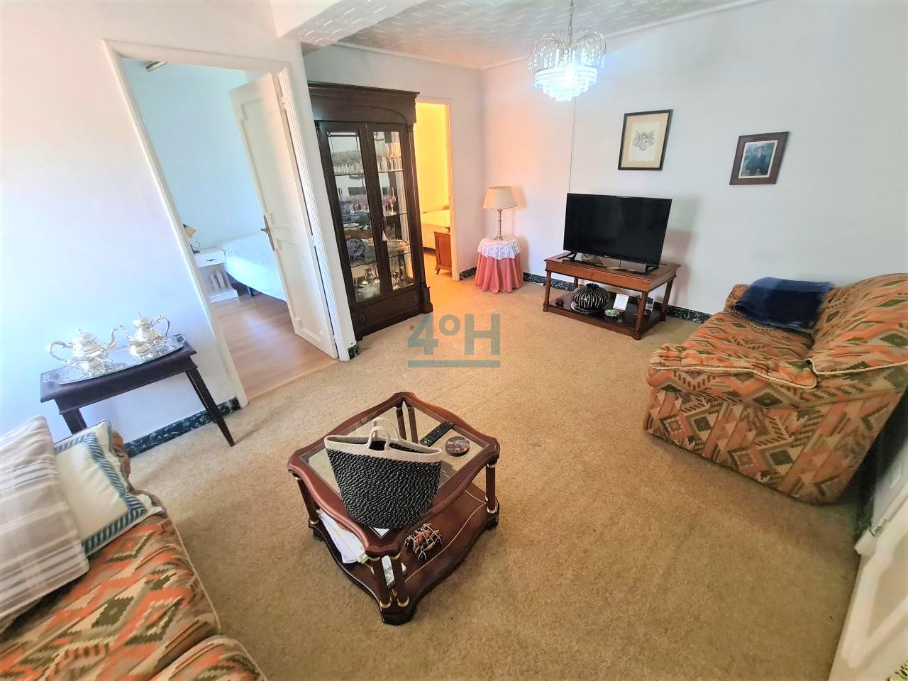 Planta primera: recibidor, salón, dos dormitorios, uno con zona de despacho, vestidor, baño completo con plato de ducha y cocina antigua.