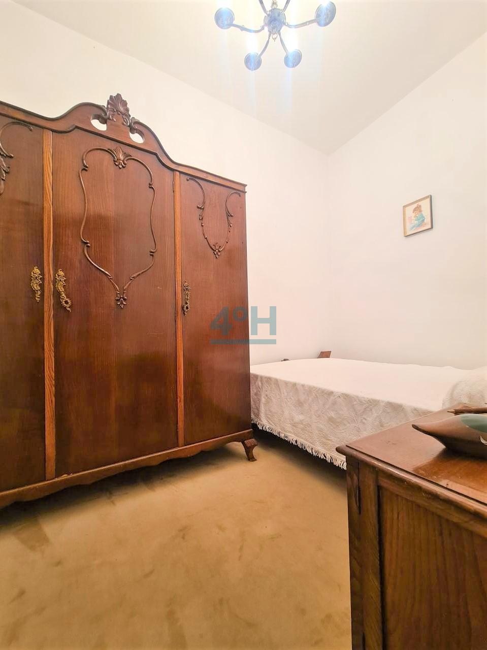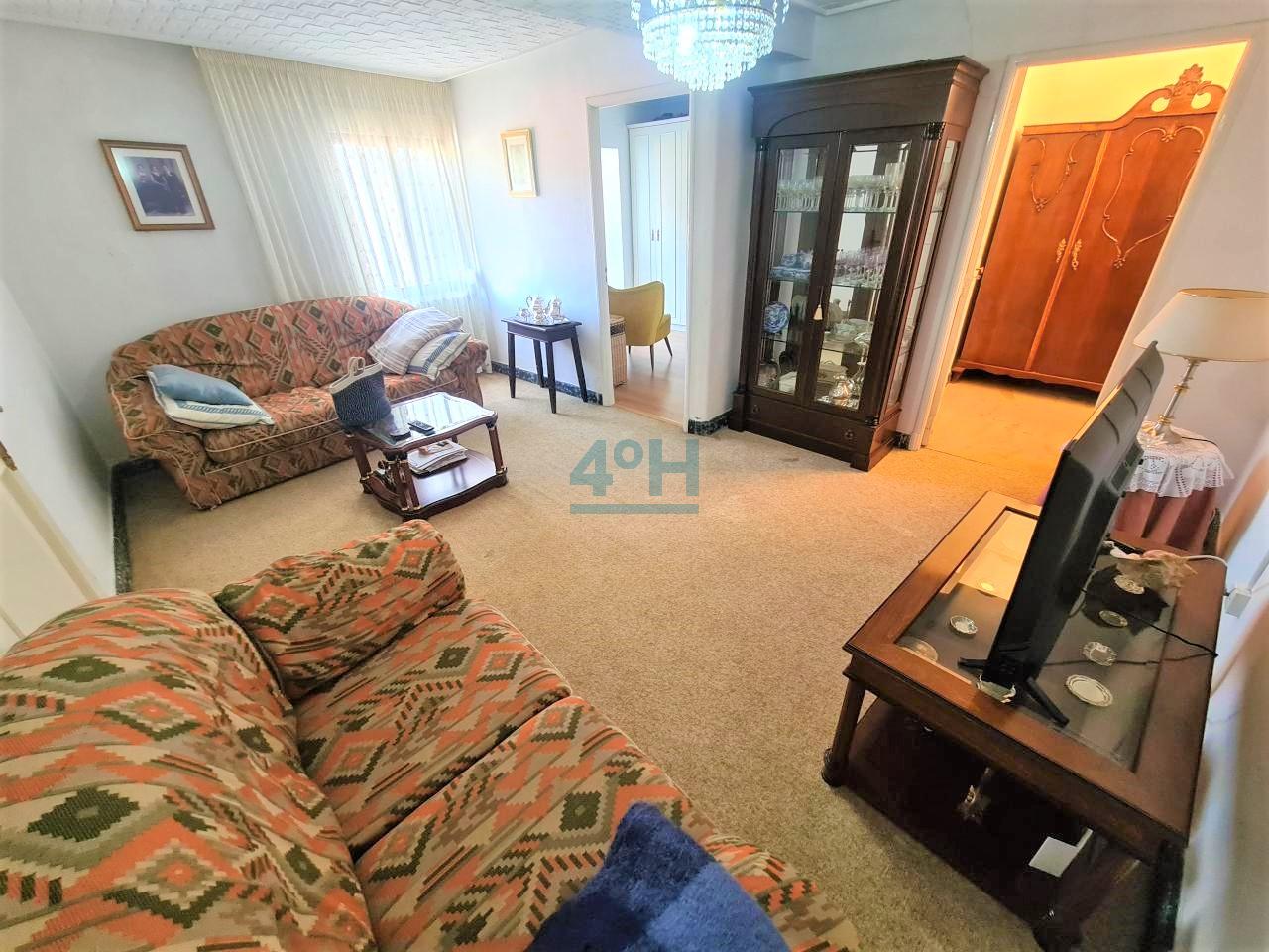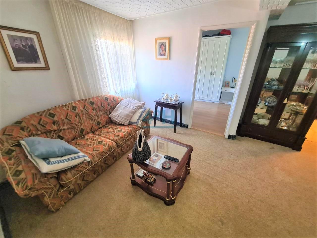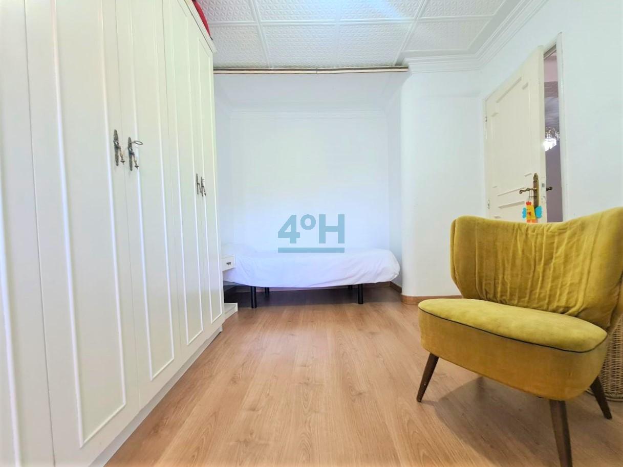 Planta primera: recibidor, salón, dos dormitorios, uno con zona de despacho, vestidor, baño completo con plato de ducha y cocina antigua.