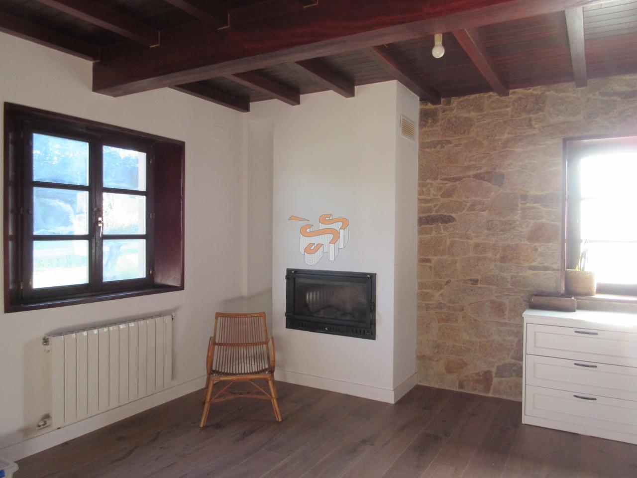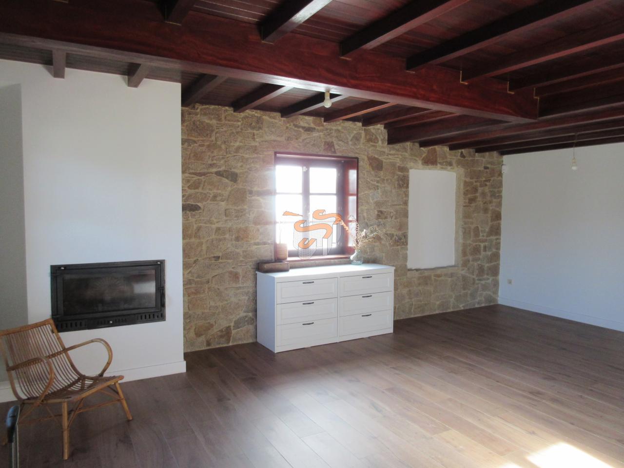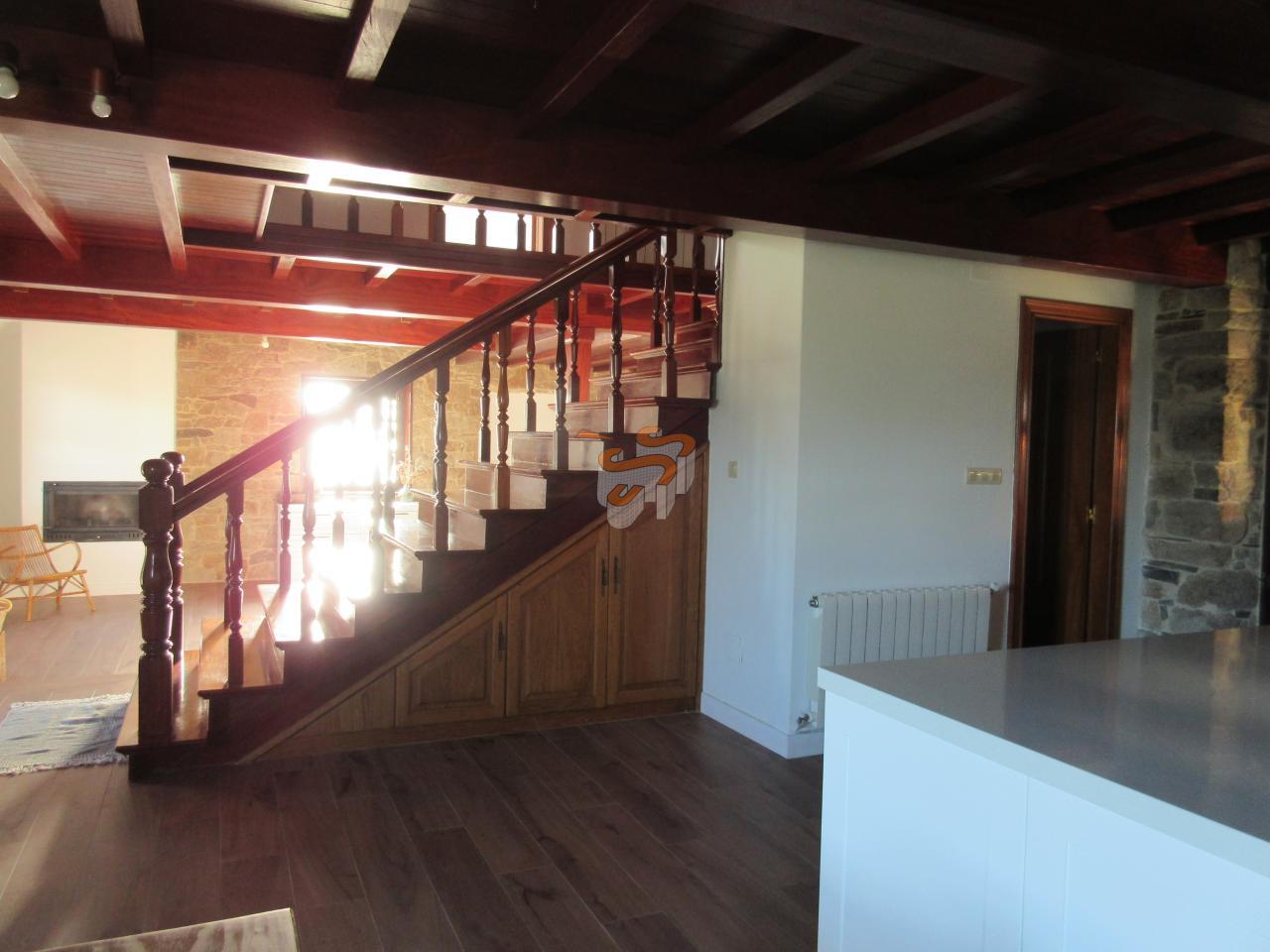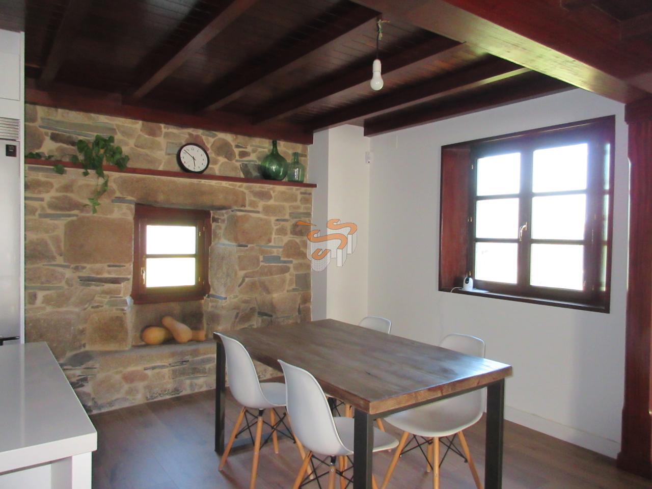 Cod C070119 O Val. Vivienda unifamiliar de piedra en dos plantas. Planta baja, a la que se accede desde un porche cubierto, distribuida en un amplio salón-comedor con cocina integrada amueblada con electrodomésticos, un baño con ducha y escaleras interiores de madera que comunican con la planta primera. Planta primera, distribuida en tres dormitorios y un baño con bañera. El salón cuenta con chimenea. Agua caliente y calefacción por gas propano. Ventanas de madera con doble cristal. Posee la instalación de fibra.