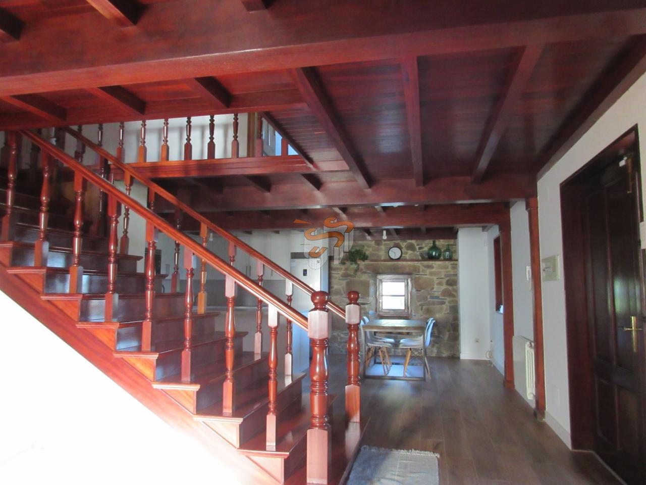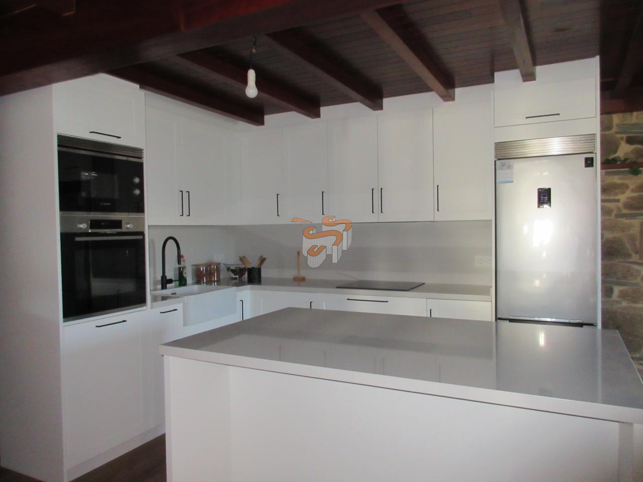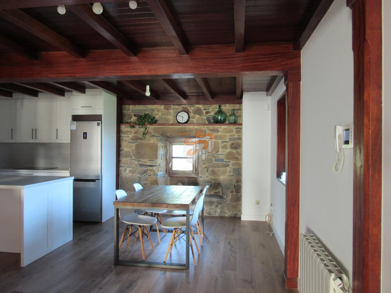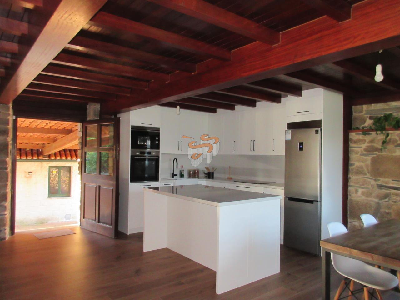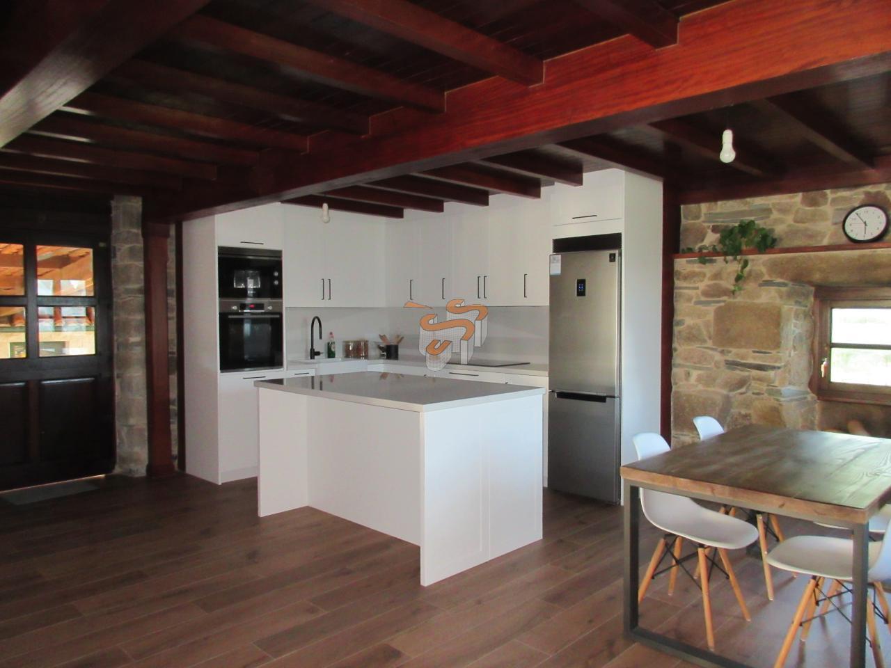 Cod C070119 O Val. Vivienda unifamiliar de piedra en dos plantas. Planta baja, a la que se accede desde un porche cubierto, distribuida en un amplio salón-comedor con cocina integrada amueblada con electrodomésticos, un baño con ducha y escaleras interiores de madera que comunican con la planta primera. Planta primera, distribuida en tres dormitorios y un baño con bañera. El salón cuenta con chimenea. Agua caliente y calefacción por gas propano. Ventanas de madera con doble cristal. Posee la instalación de fibra.