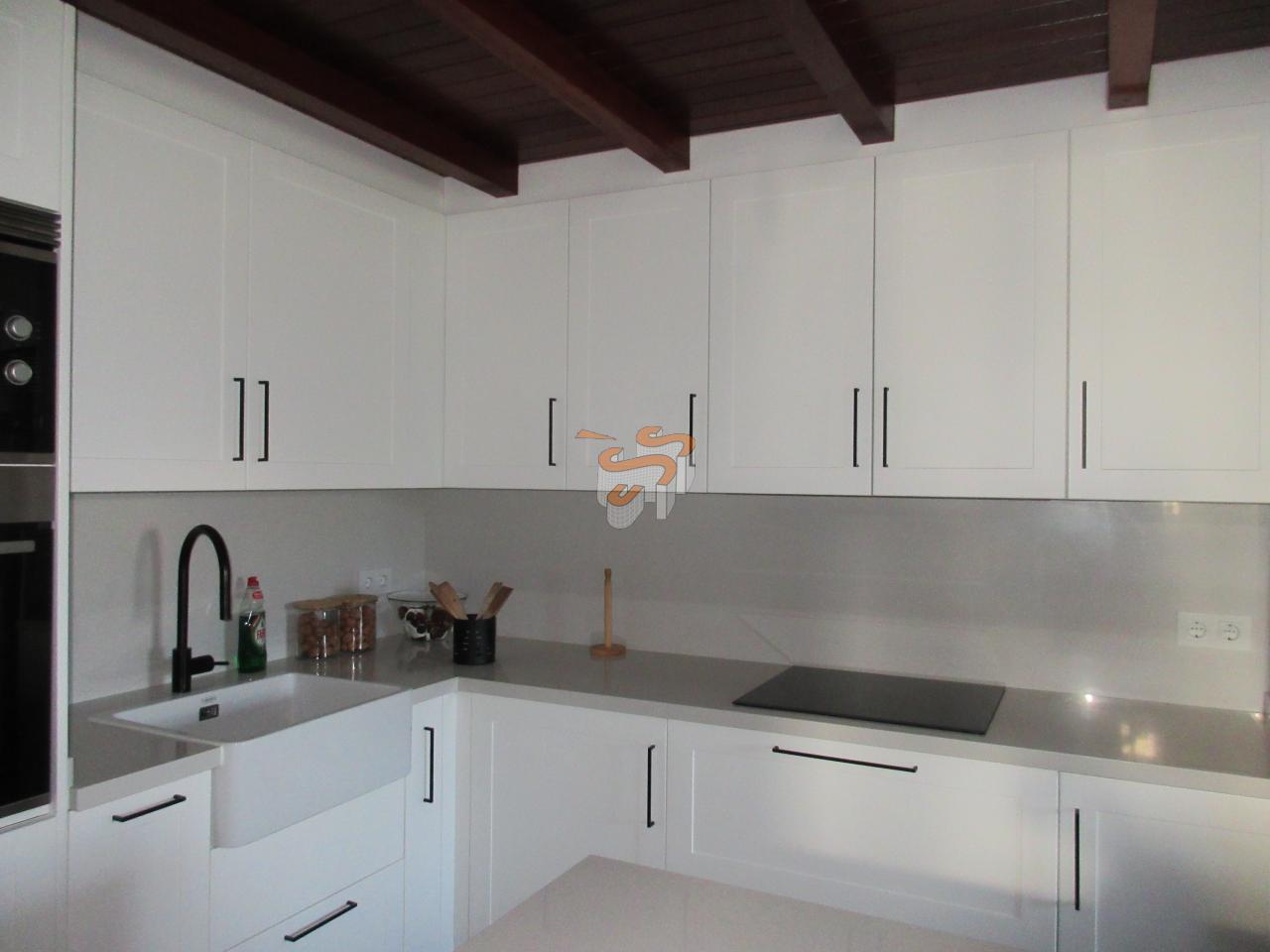 Casa de invitados de 100 m2 que, en planta baja, la tiene dedicada a garaje y en planta primera se distribuye en salón-comedor con cocina integrada amueblada, dormitorio y baño. Suelos de gres y ventanas de aluminio.