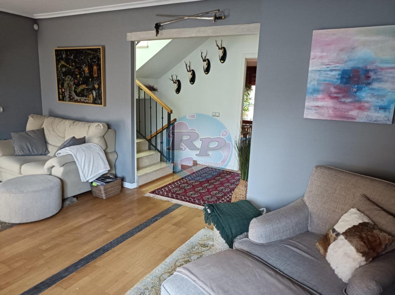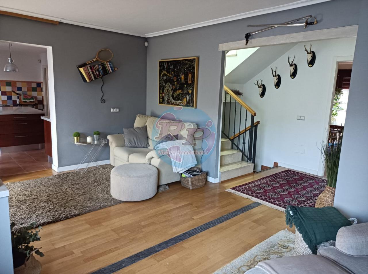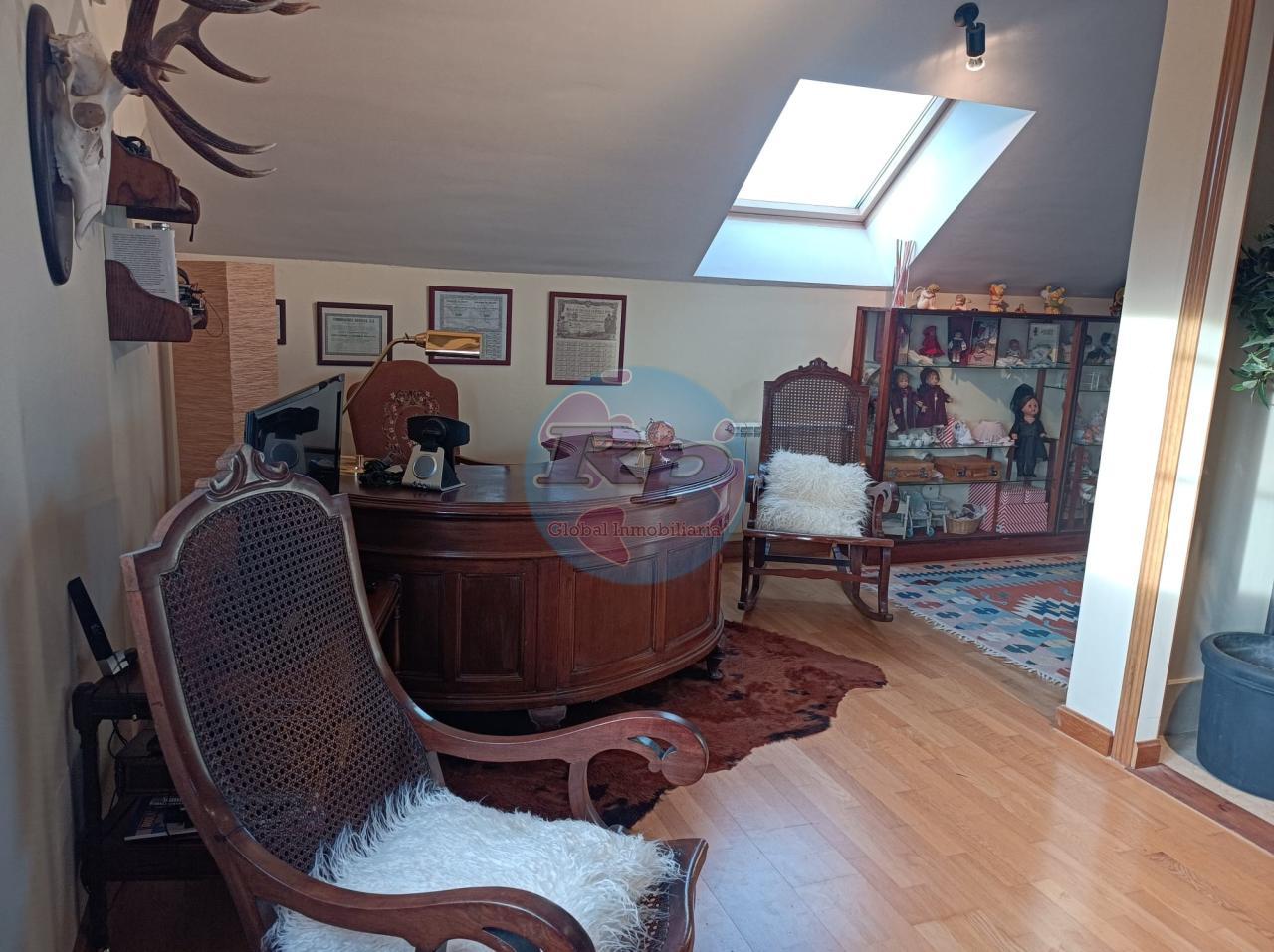 Zona Carbajal . Amplio chalet , son dos pareados unidos. Dispone de salón de 60m2 , amplia cocina de 30m2 completamnete amuablada y equipada con zona de comedor. Cuatro dormitorios , tres de ellos en "suite" con baño y dos baños más. Zona de buhardilla acondicionada como salita pero se puede usar como dormitorio adicional. Garaje para dos cohes. Jardín privado con piscina. Calefacción individual de gas ciudad . No lo dude, consulte.