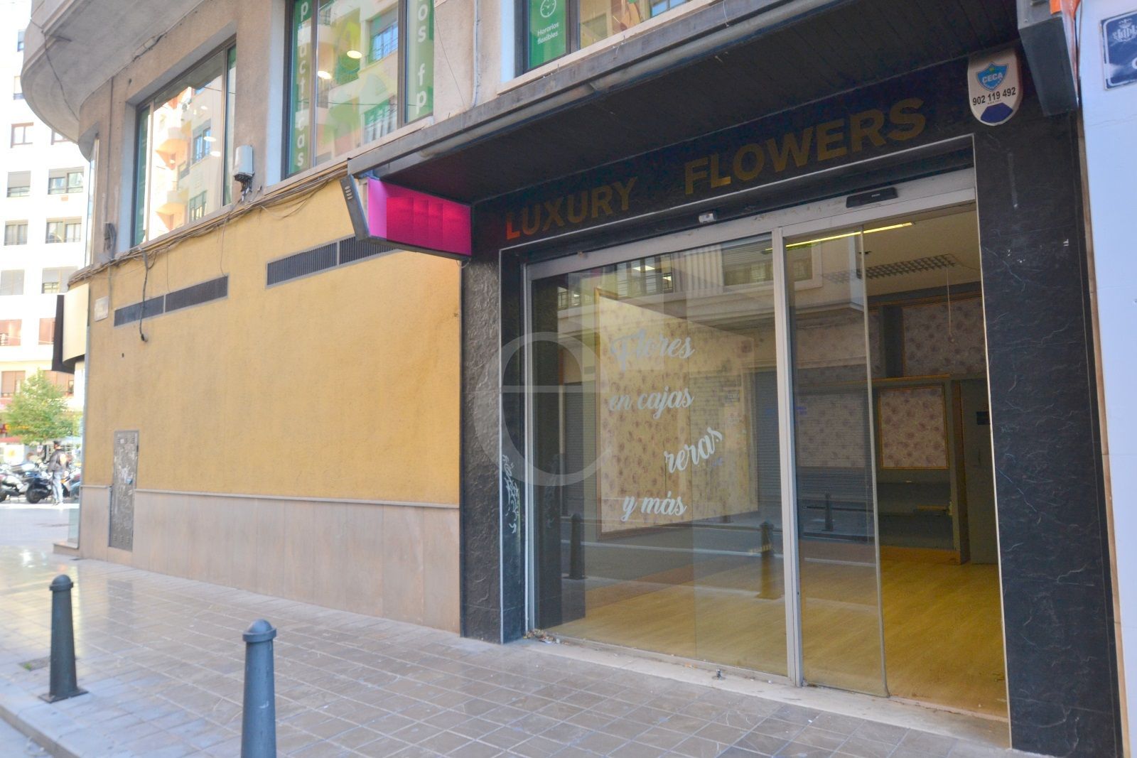Local comercial con gran almacén en Avenida del Oeste, muy cerca del Mercado Central, el Ayuntamiento, y la estación del Norte, muy bien comunicado con líneas de autobús, metro, y cercanías, además de ser una calle de transito de gente, y con mucha visibilidad de vehículos y transporte público.El local se distribuye en una planta baja diáfana, de unos 28 m², de atención comercial, donde también hay un aseo; y una planta sótano destinada a un gran almacén de 50 m². El local tiene un split de aire acondicionado frío/calor en planta baja, y el suelo es de tarima de parquet.