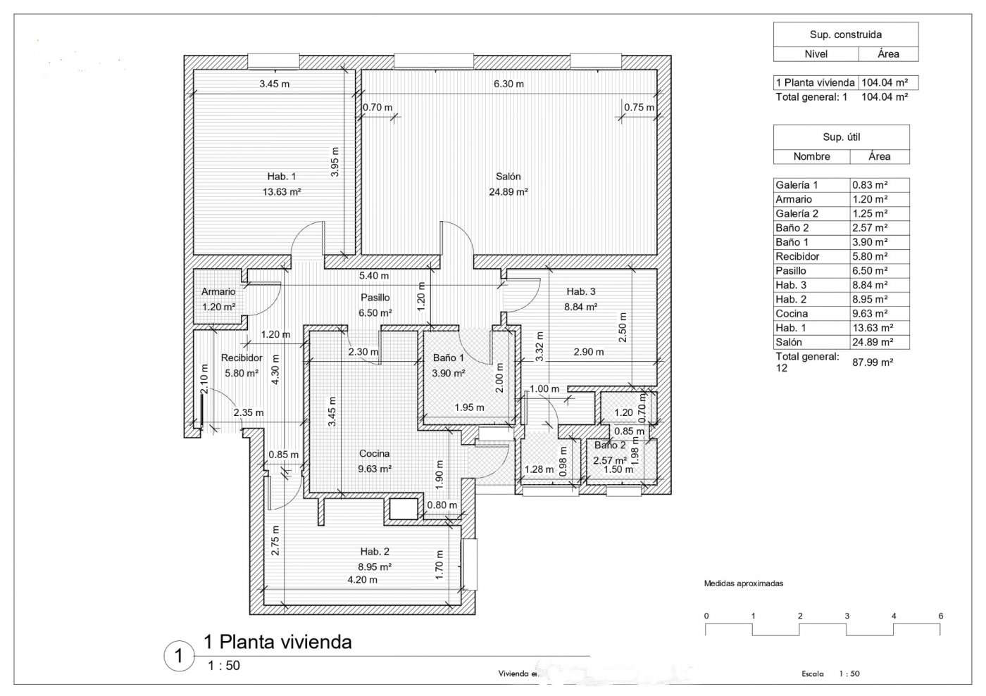 Inmueble de 104 m2 de superficie construida según el Registro de la propiedad.
