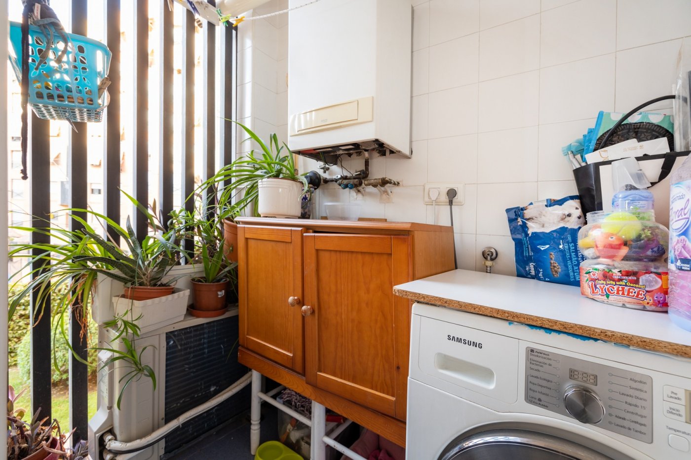 El piso dispone de tres dormitorios con vistas a la urbanización , con dos baños completos, uno de ellos en suite, cocina independiente, la cual se queda equipada y además tiene lavadero y un amplio salón que tiene vistas a la calle, además incluye el parking y el trastero en el precio. Tiene aire acondicionado por split en el salón y calefacción y agua caliente por gas natural.