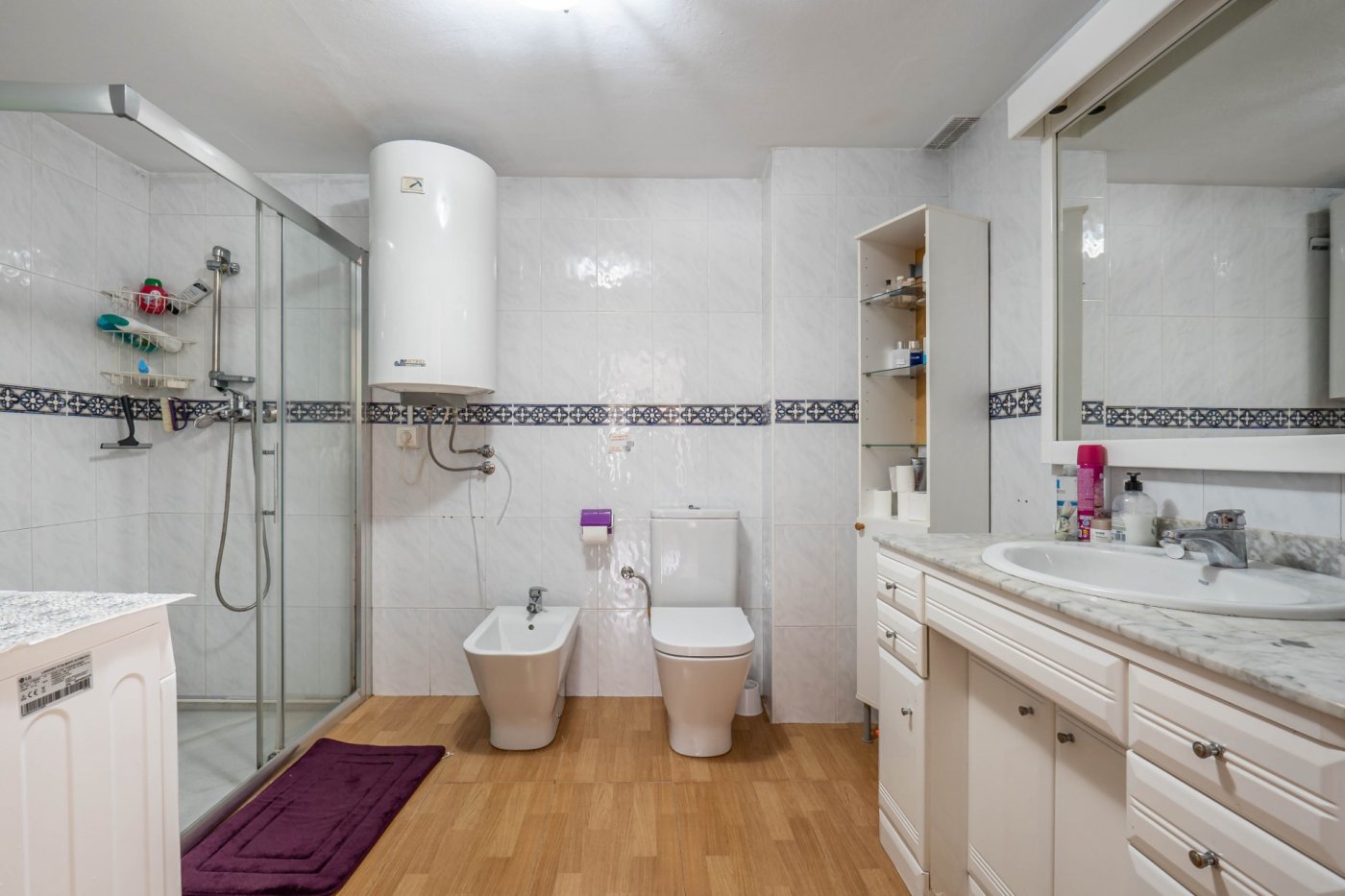 El baño está adaptado para poder entrar con silla de ruedas, además con plato de ducha adaptado.