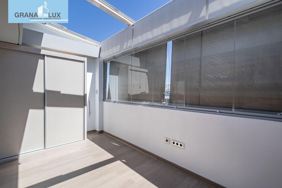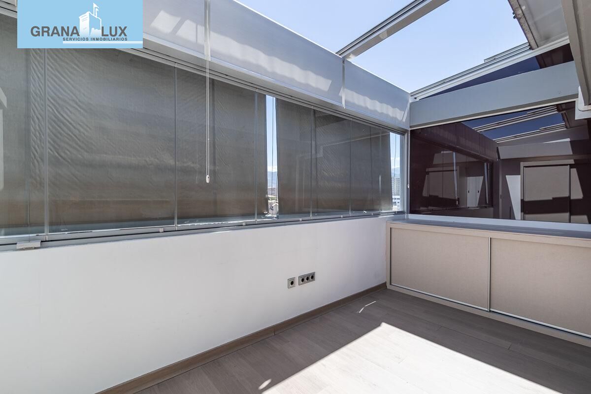 Teletrabajas o necesitas un espacio para leer o jugar con tu Play y que nadie te moleste???? La parte de la terraza del dormitorio principal, se ha cubierto y cerrado igual que la terraza con techo bioclimático y cristalera totalmente abatible y se ha hecho una oficina de más de 10 m2. Qué lujo poder trabajar mirando a Sierra Nevada y poder abrir y cerrar el techo y la cristalera según haga más o menos frío, o haya más o menos sol... Serás la envidia de la oficina!!!! Hasta tu jefe querrá trabajar en tu despacho!!!!