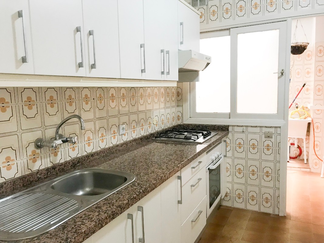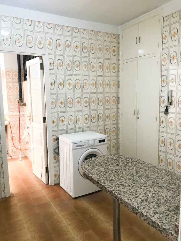 La vivienda cuenta con una entrada muy amplia que da paso a un salón comedor muy luminoso, con salida a un balcón muy agradable a la calle Pi y Margall. Cuenta con cocina independiente, totalmente amueblada y equipada con despensa empotrada y barra de desayuno. Anexo a la cocina encontramos un patio interior con lavadero. Un pasillo distribuye los cuatro dormitorios y los dos baños completos, ambos con bañera. Tres de los cuatro dormitorios son exteriores y tienen armarios empotrados.