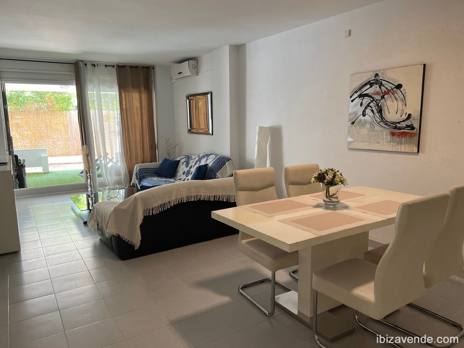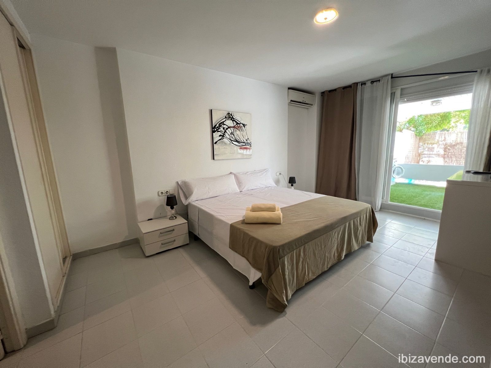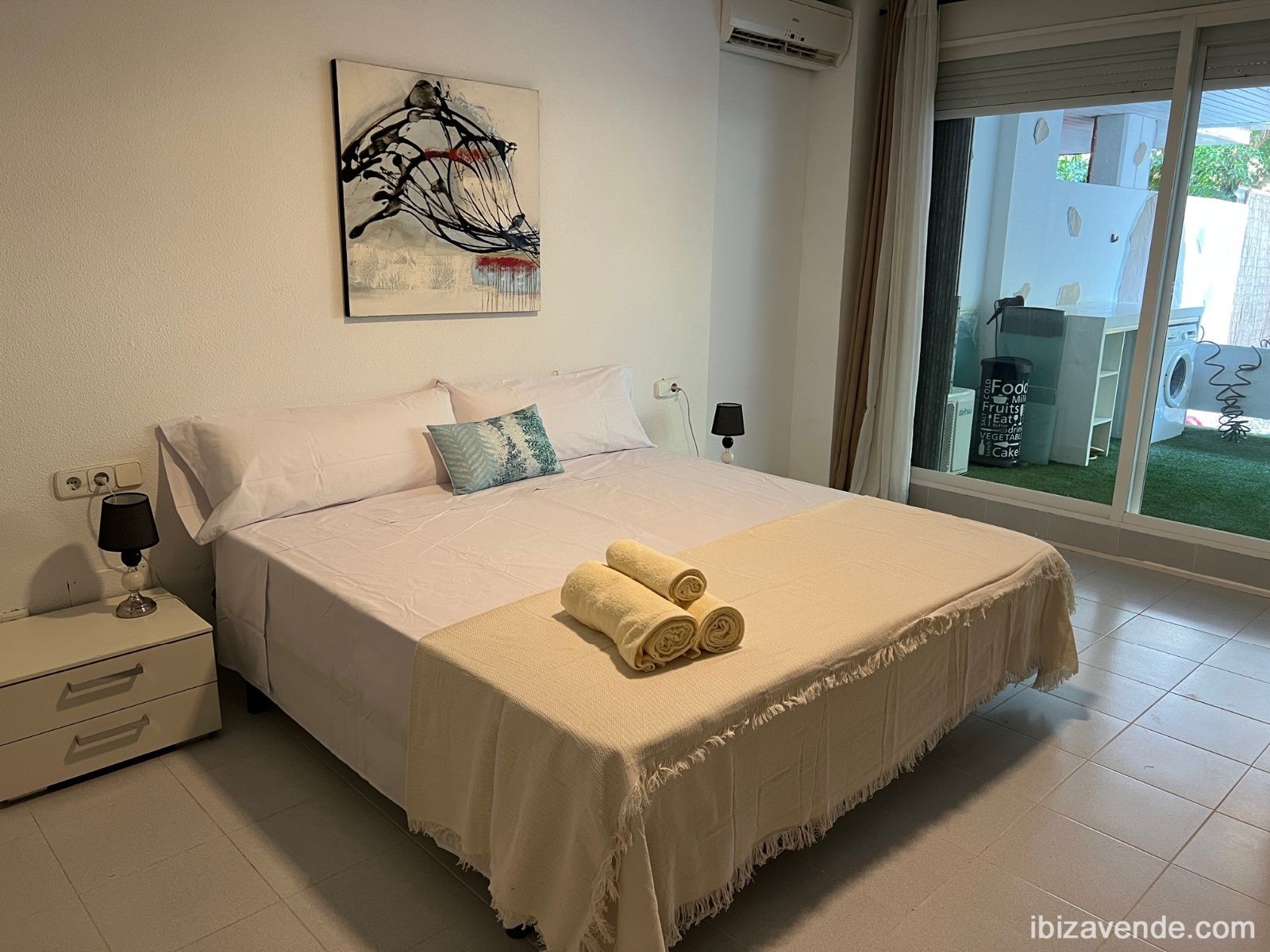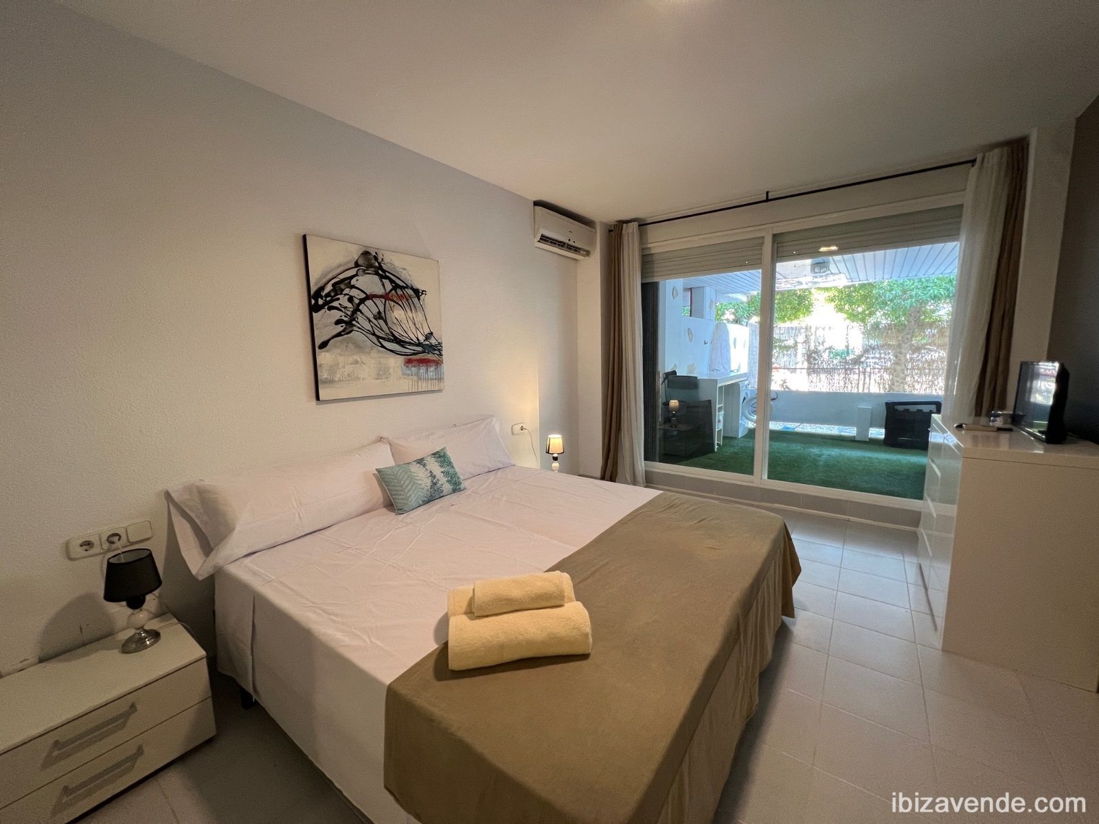 Se alquila de 3 de septiembre a 31 de mayo a 1.600 € al mes. NO ES POSIBLE ANUAL. Y también se vende. Bonito bajo en Botafoc con 2 dormitorios dobles en buen edifico de segunda linea, al lado del Hotel Pacha, Ibiza gran hotel, Chipriani... Este piso tiene hall, 2 dormitorios, 2 baños, un dormitorio principal con una cama doble, y otro con una cama doble y se podría poner una cama individual si hace falta, y en el salón hay un sofa cama doble nuevo, cocina abierta, salón y comedor con acceso directo a la terraza con zona de almuerzo y jardín privado. Está totalmente equipado. El edificio tiene piscina comunitaria. Zona residencial tranquila y exclusiva. Se accede por calle que es fondo de saco, sin trafico ni ruidos y el jardín da a calle peatonal, muy tranquilo. A pocos minutos de la playa de Talamanca y del centro de Ibiza. En la milla de oro, al lado del Hotel Pacha, el Gran Hotel de Ibiza, Cipriani, Pacha, Lio...Muy rentable como inversión también para alquilar, rentabilidad de un 8 % anual.Estaremos encantados de concertar una cita para ver la propiedad.Tenemos muchas otras casas, pisos, villas, fincas, locales comerciales y terrenos en alquiler y venta en la isla. Gracias por considerarnos como su agencia inmobiliaria en Ibiza.