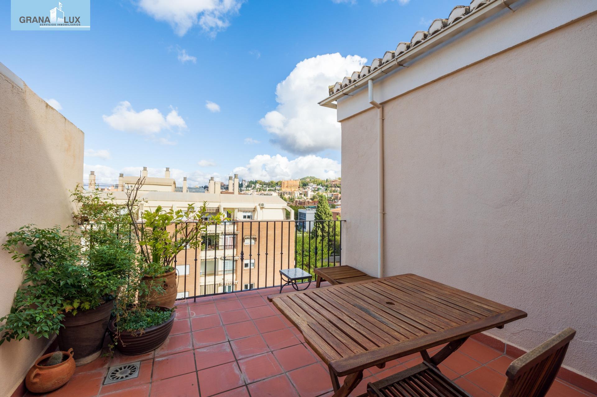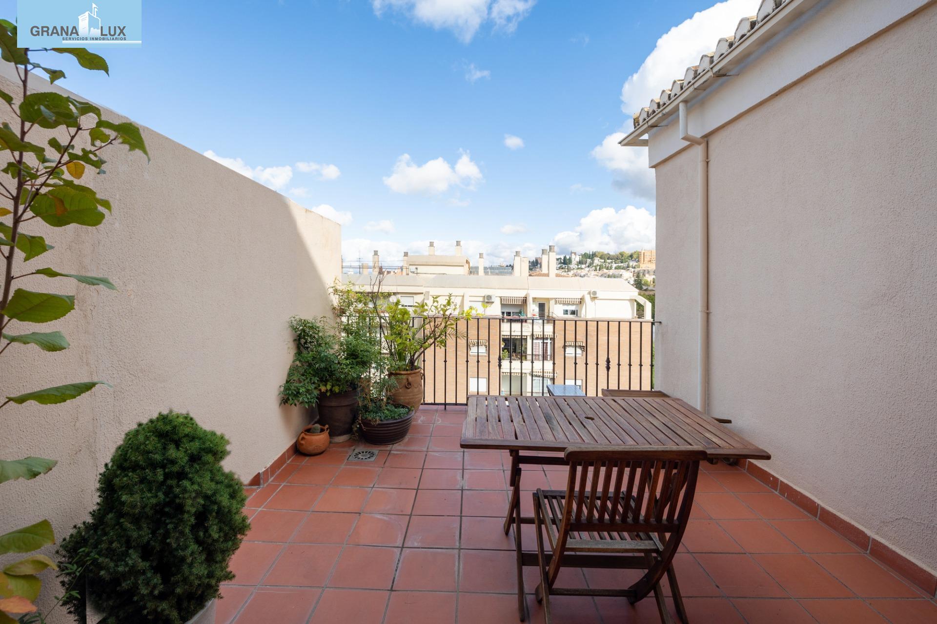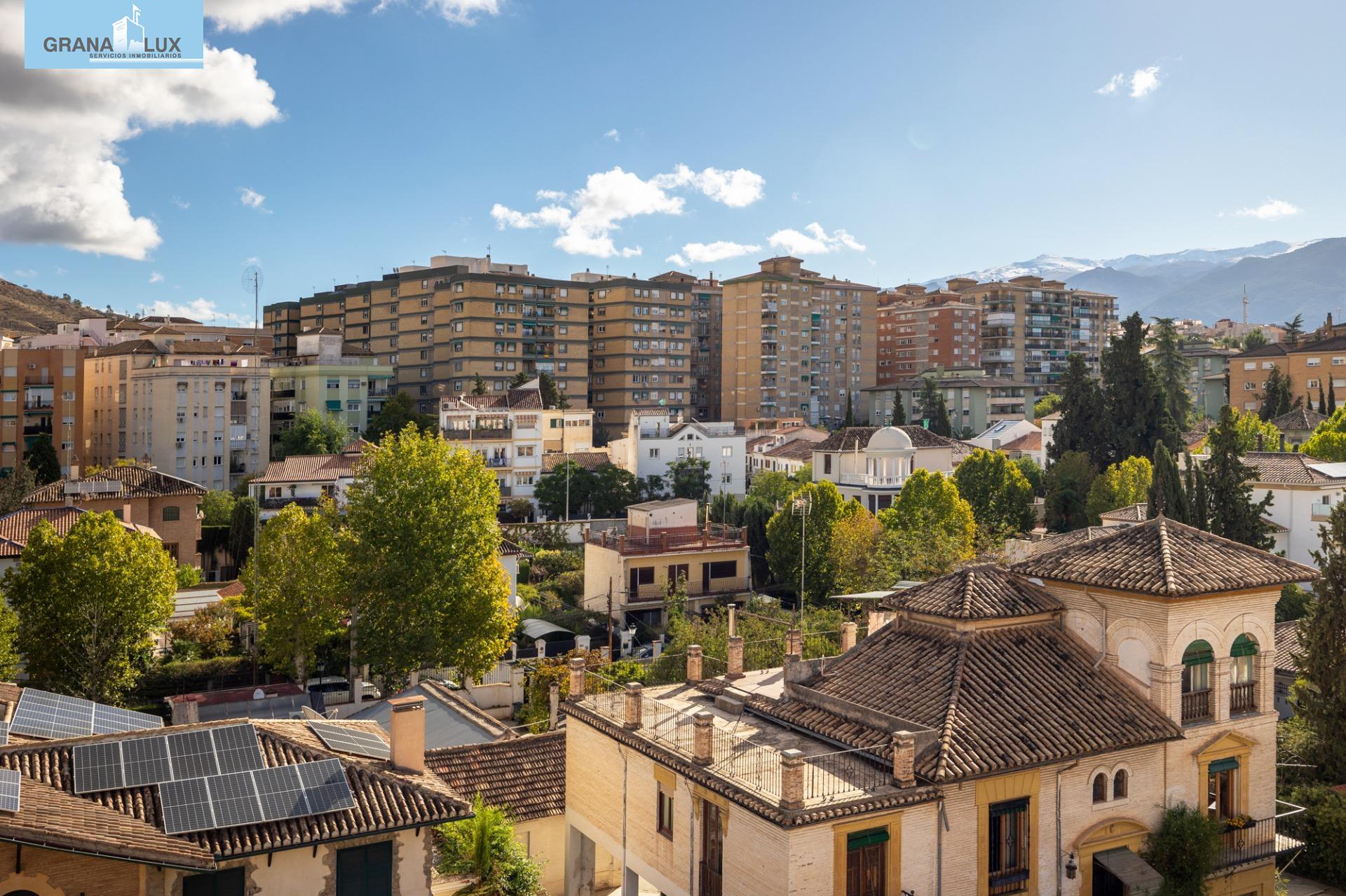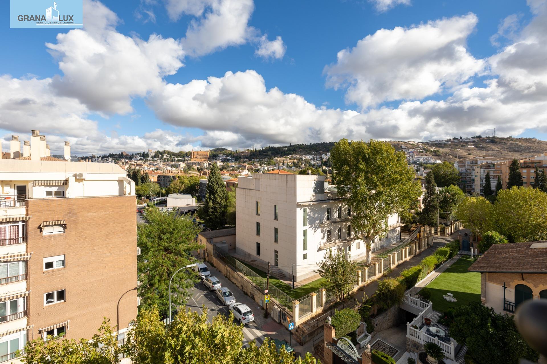 El inmueble se distribuye en un acogedor y luminoso salón, haciendo esquina, con dos grandes ventanas con increíbles vistas, cocina con despensa y acceso directo a una de las terrazas, la cual por su encanto y privacidad, es única. Tres dormitorios con mucha luz, uno de ellos situado en la planta torreón, con acceso desde la planta principal de la vivienda y desde el cual podrá seguir disfrutando de las privilegiadas vistas. El dormitorio principal cuenta con baño incorporado y con acceso directo a otra preciosa e íntima terraza. El piso cuenta con calefacción individual por gas natural y ventanas de aluminio con doble acristalamiento. El edificio dispone de ascensor. Muy pocos pisos hay en Granada como este. Mejor visítelo, le sorprenderá, llámenos para ampliar información.
