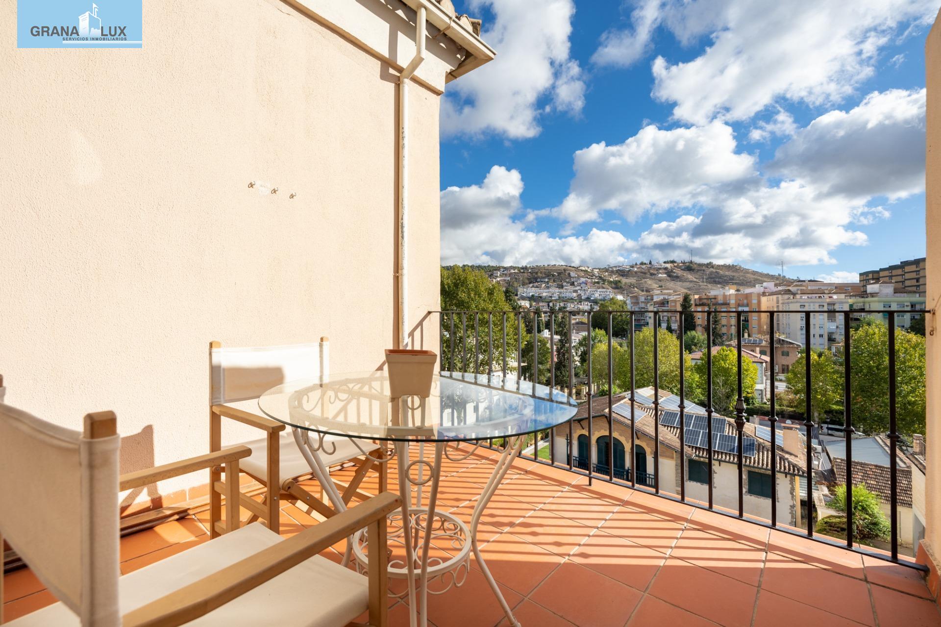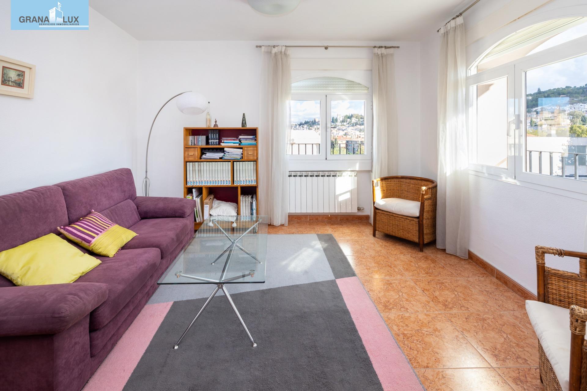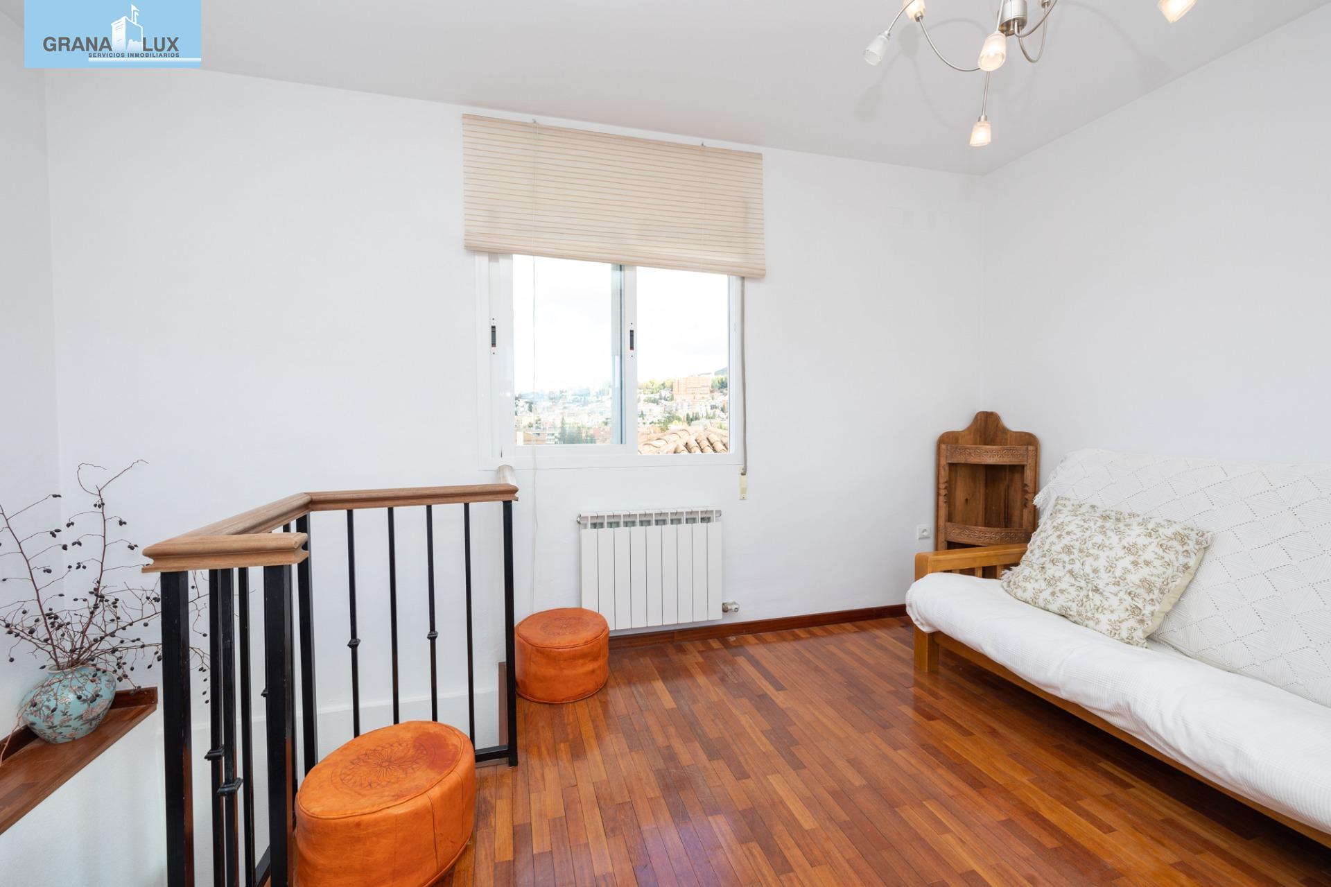 El inmueble se distribuye en un acogedor y luminoso salón, haciendo esquina, con dos grandes ventanas con increíbles vistas, cocina con despensa y acceso directo a una de las terrazas, la cual por su encanto y privacidad, es única. Tres dormitorios con mucha luz, uno de ellos situado en la planta torreón, con acceso desde la planta principal de la vivienda y desde el cual podrá seguir disfrutando de las privilegiadas vistas. El dormitorio principal cuenta con baño incorporado y con acceso directo a otra preciosa e íntima terraza. El piso cuenta con calefacción individual por gas natural y ventanas de aluminio con doble acristalamiento. El edificio dispone de ascensor. Muy pocos pisos hay en Granada como este. Mejor visítelo, le sorprenderá, llámenos para ampliar información.
