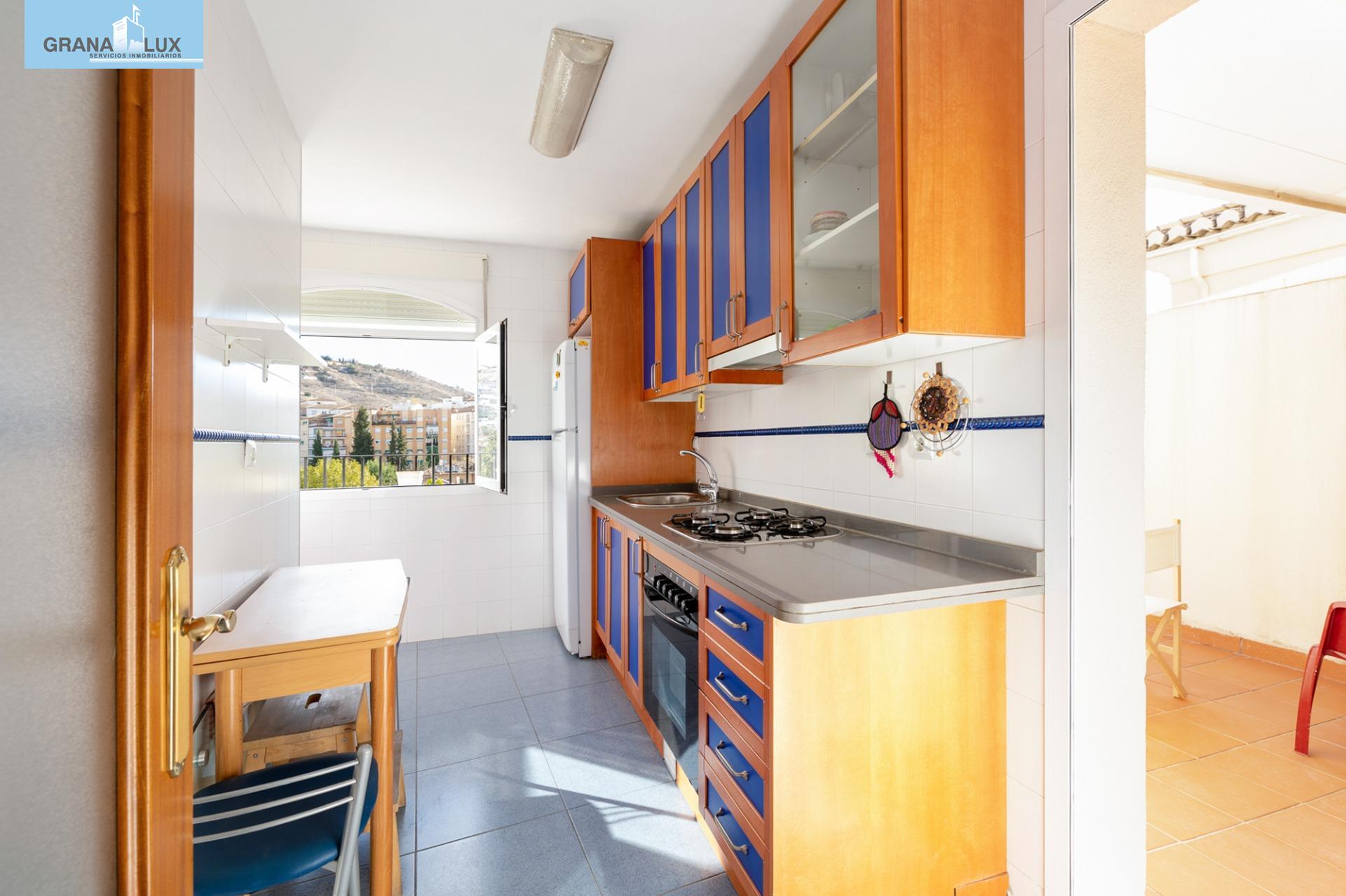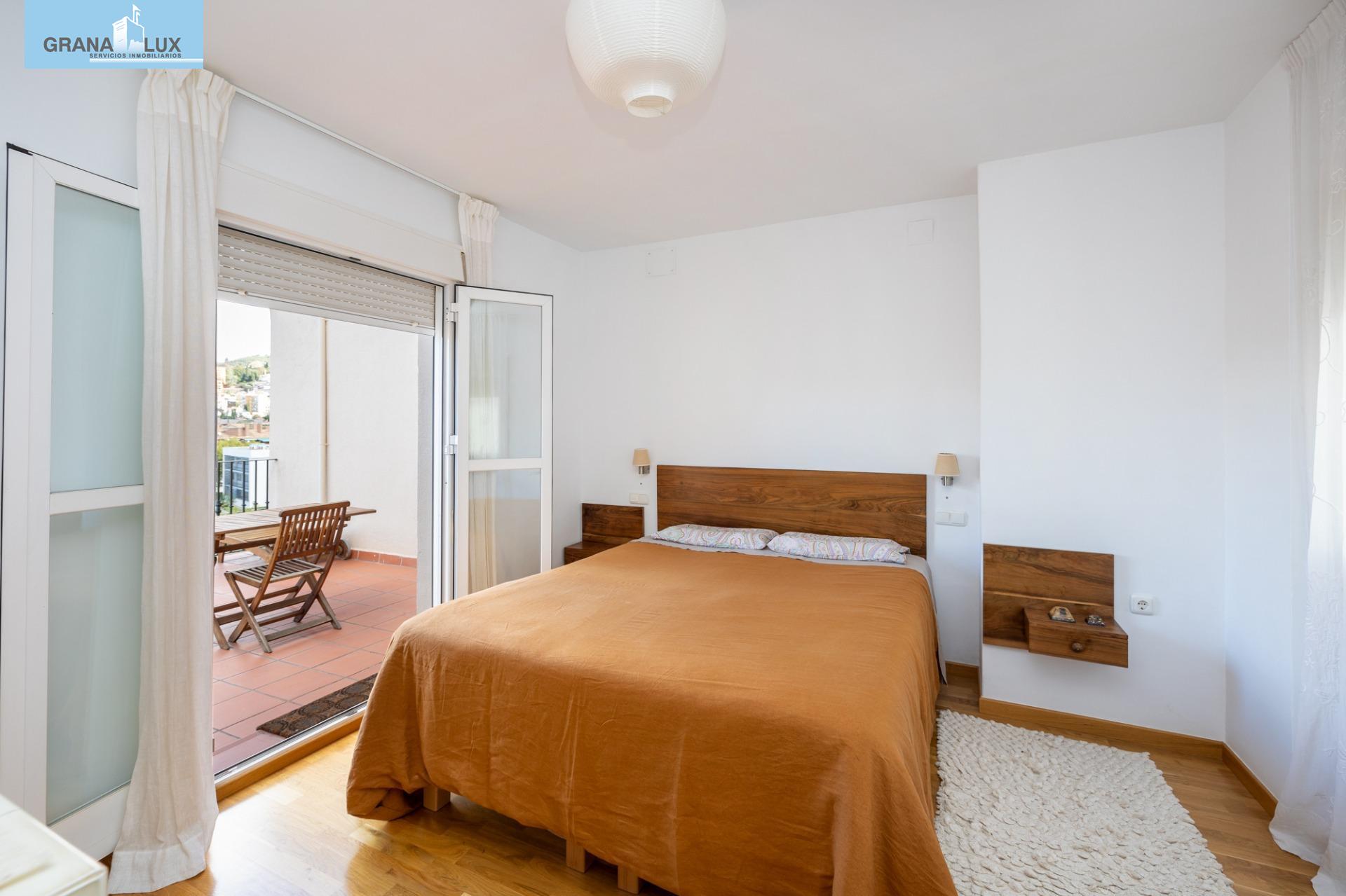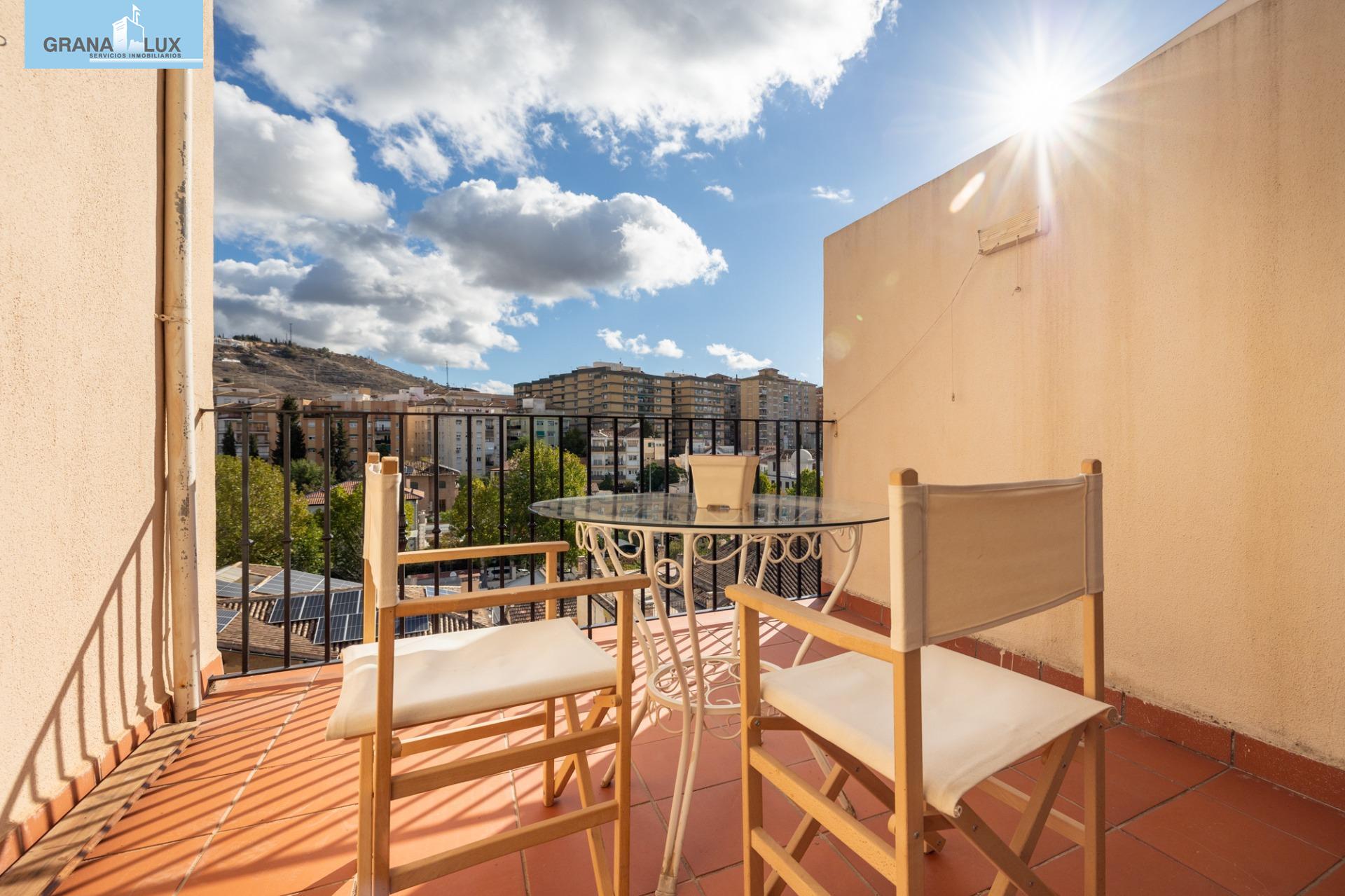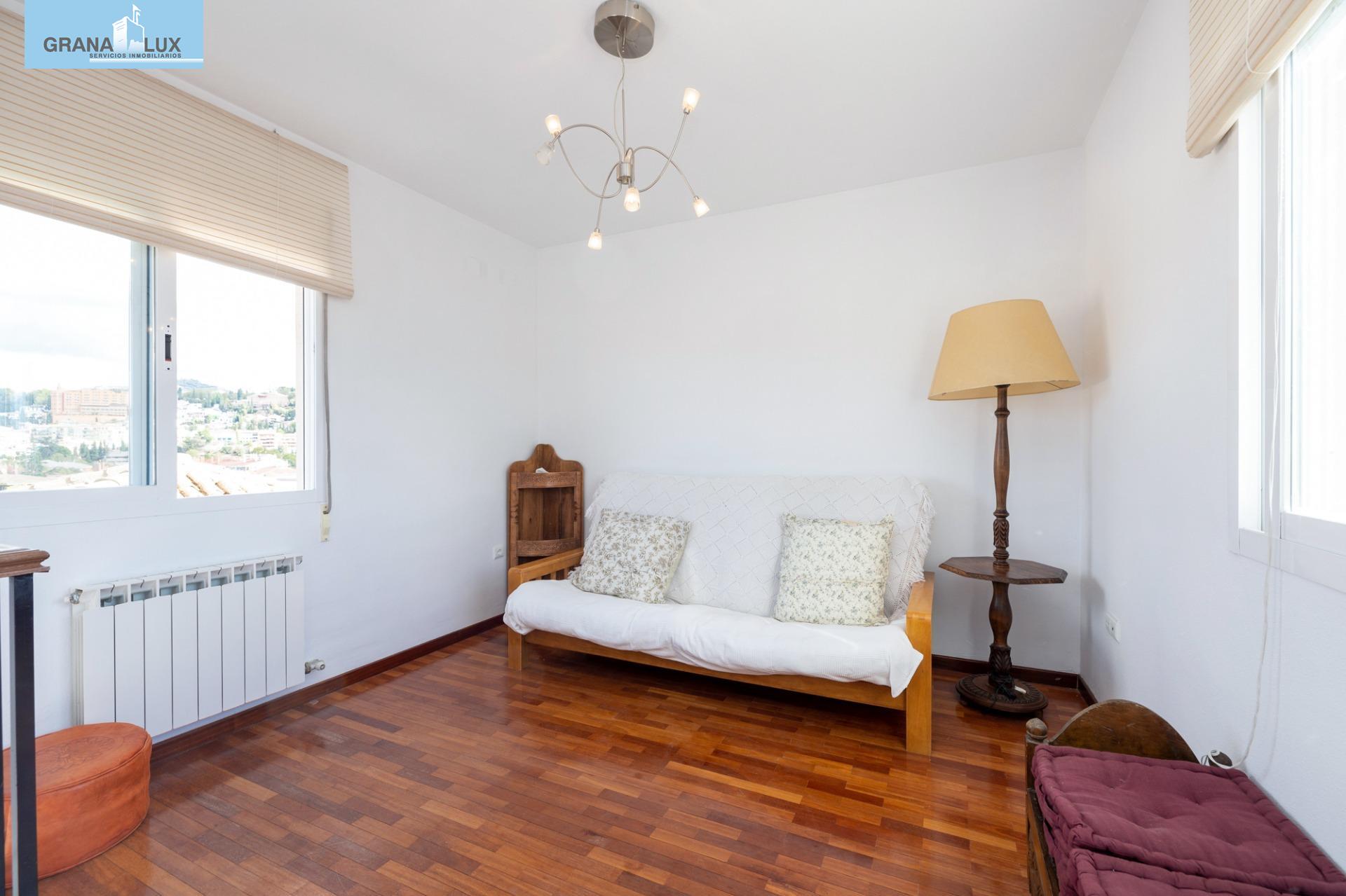 El inmueble se distribuye en un acogedor y luminoso salón, haciendo esquina, con dos grandes ventanas con increíbles vistas, cocina con despensa y acceso directo a una de las terrazas, la cual por su encanto y privacidad, es única. Tres dormitorios con mucha luz, uno de ellos situado en la planta torreón, con acceso desde la planta principal de la vivienda y desde el cual podrá seguir disfrutando de las privilegiadas vistas. El dormitorio principal cuenta con baño incorporado y con acceso directo a otra preciosa e íntima terraza. El piso cuenta con calefacción individual por gas natural y ventanas de aluminio con doble acristalamiento. El edificio dispone de ascensor. Muy pocos pisos hay en Granada como este. Mejor visítelo, le sorprenderá, llámenos para ampliar información.