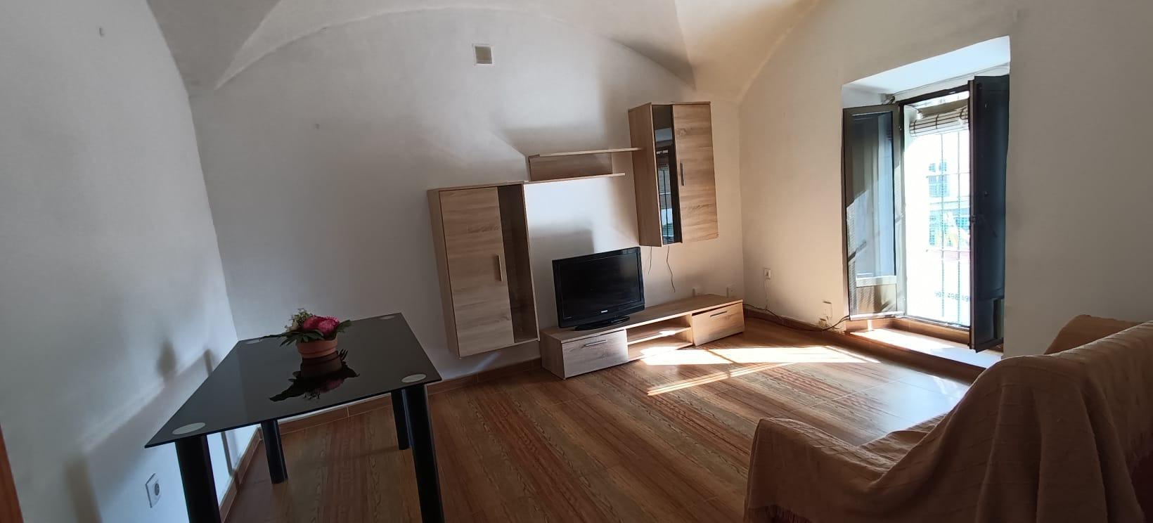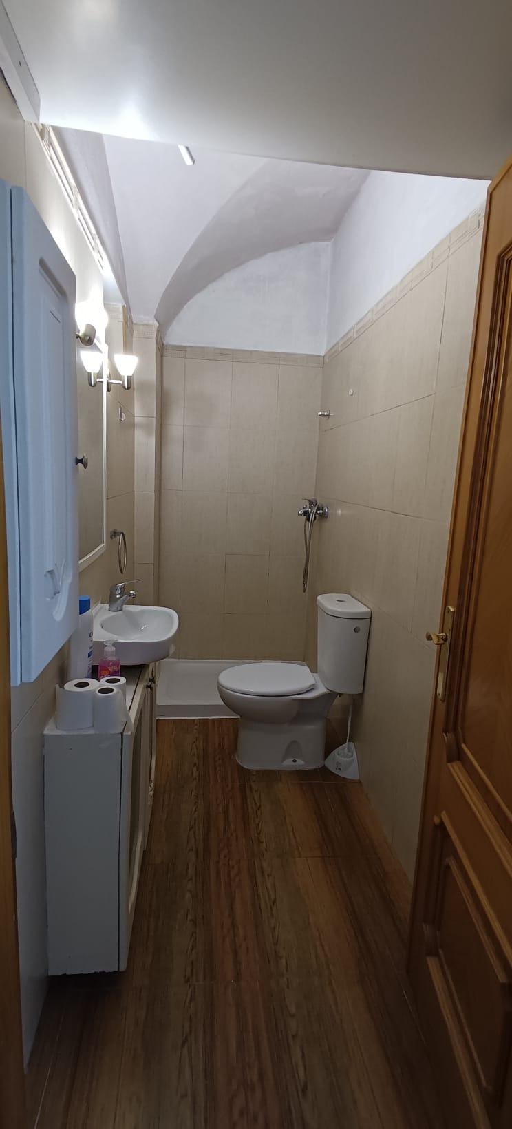 Hall de entrada con cristales de pavés , cocina independiente , salón a doble altura, dos habitaciones individuales y otro doble. Baño con plato de ducha antideslizante.