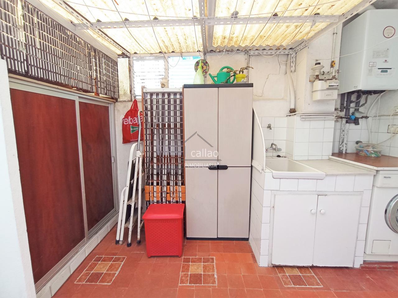 Ya te hicimos spoiler de lo que viene pero... A continuación de la cocina, ¡tienes una terraza! Pero no una cualquiera! ^^ Cuenta tanto con zona cubierta (para tender la ropa), como descubierta (¿ no ves lo felices que están las plantas?). A mayores y para que no ocupe espacio en la vivienda, está determinada la zona de lavado: tanto la lavadora como un pilón estupendo para lo que prefieras lavar a mano o no ensuciar dentro. ¿Te fijaste en los armarios de fuera? ¡Viva el almacenaje!