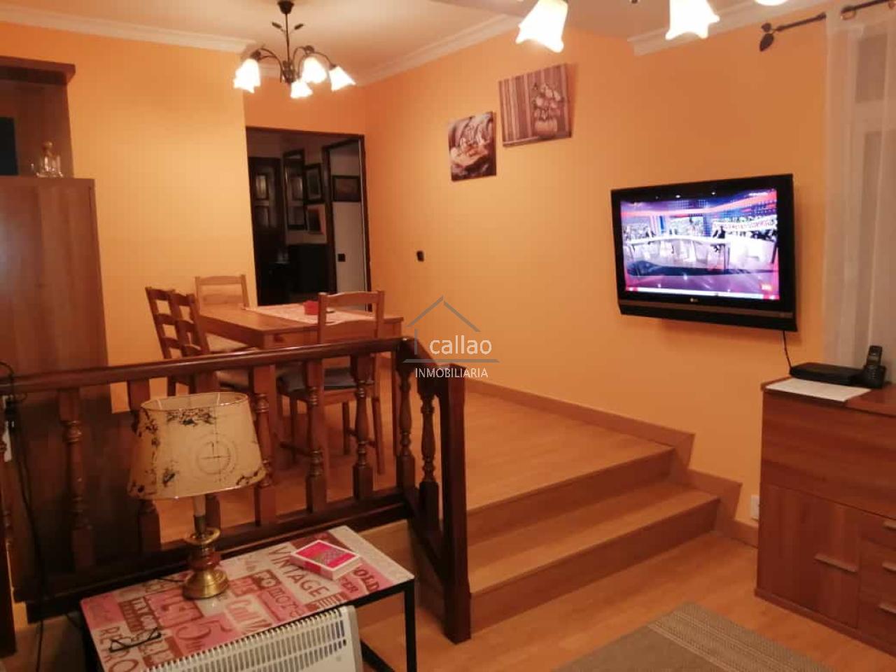 El salón comedor es a dos alturas. El comedor se encuentra en la parte alta y el salón está en la parte de abajo, bajando dos escalones,