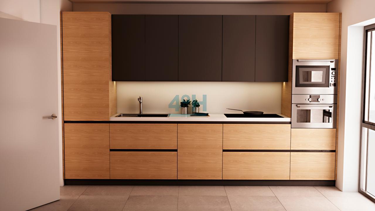 Carpinterías interiores con acabado en roble y tonos claros.