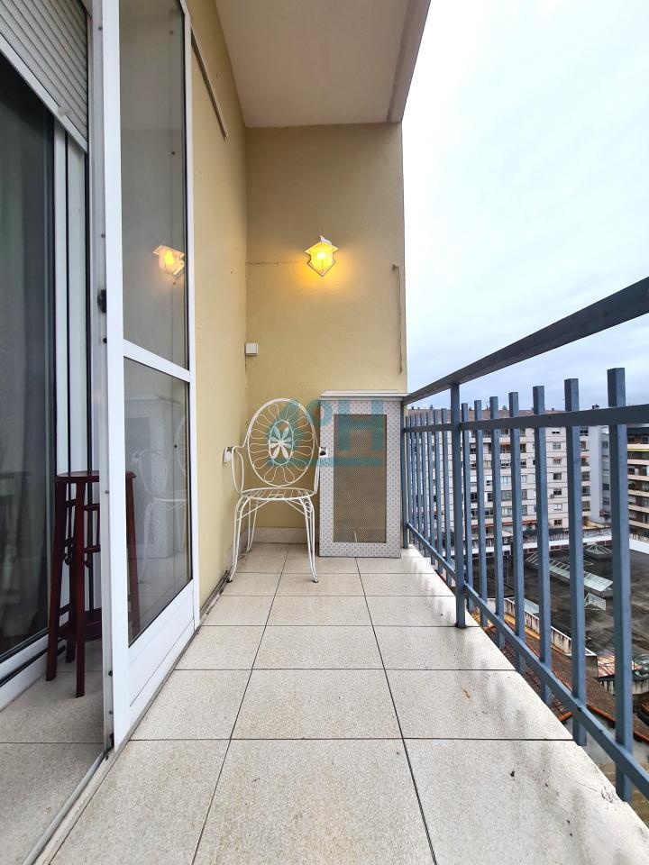 Está distribuida en recibidor, cocina independiente equipada con electrodomésticos, salón con mueble librería, mesa de comedor y sofá cama, con acceso a balcón,vistas a fachada trasera, dos dormitorios y un baño completo reformado.