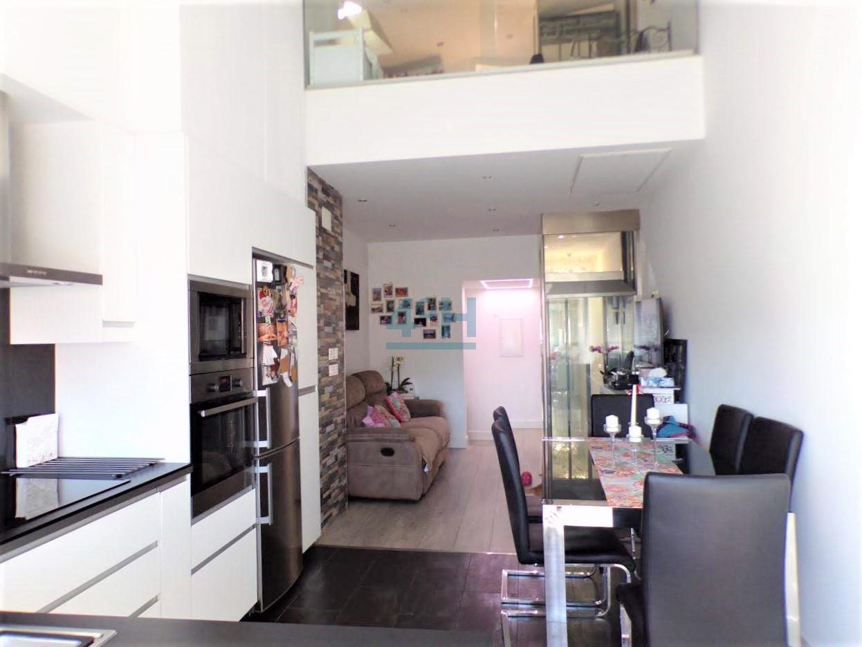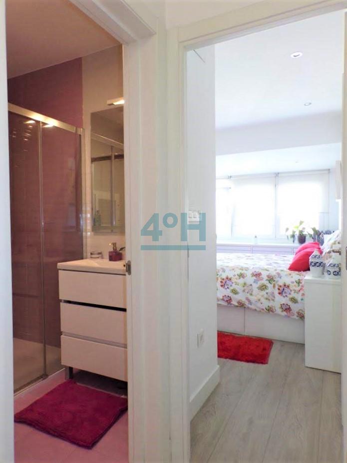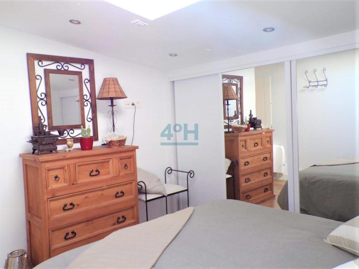 Planta primera: salón cocina americana equipada con todos los electrodomésticos (lavadora, lavavajillas, combi, horno, placa de inducción y campana extractora), dormitorio de matrimonio con amplio armario empotrado y ventanal con mucha luz natural, baño completo con plato de ducha.