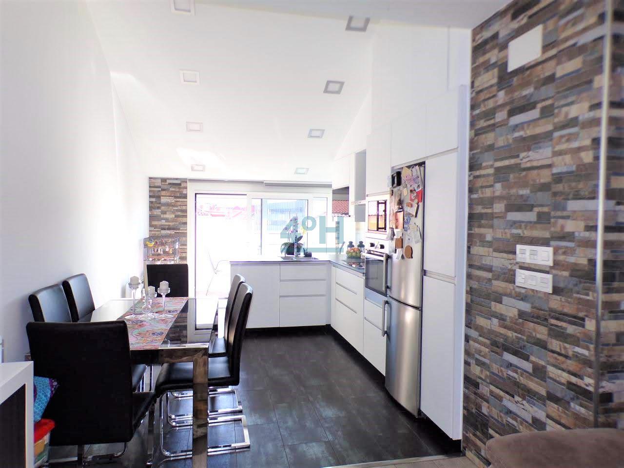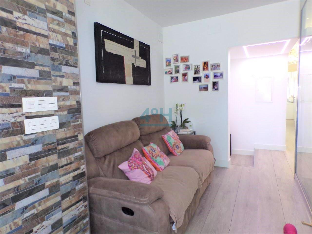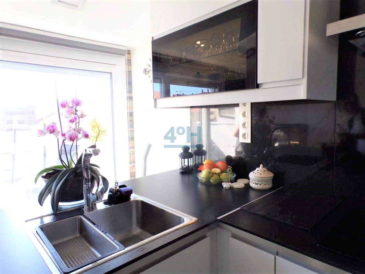 Planta primera: salón cocina americana equipada con todos los electrodomésticos (lavadora, lavavajillas, combi, horno, placa de inducción y campana extractora), dormitorio de matrimonio con amplio armario empotrado y ventanal con mucha luz natural, baño completo con plato de ducha.