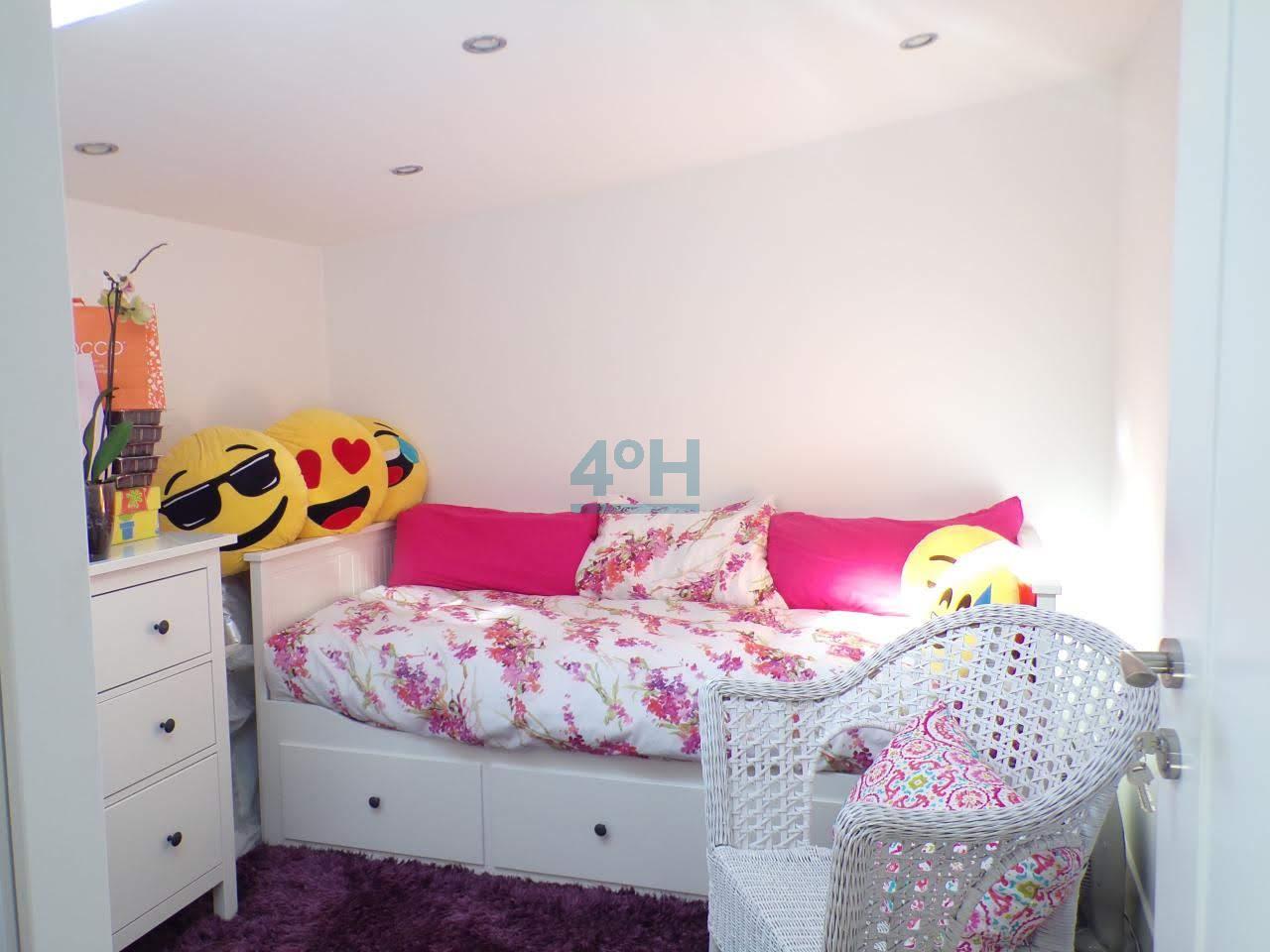 Planta bajo cubierta: dos dormitorios (uno de ellos de matrimonio) los dos con armarios empotrados, zona de estudio, baño completo con lavabo doble y bañera de hidromasaje.