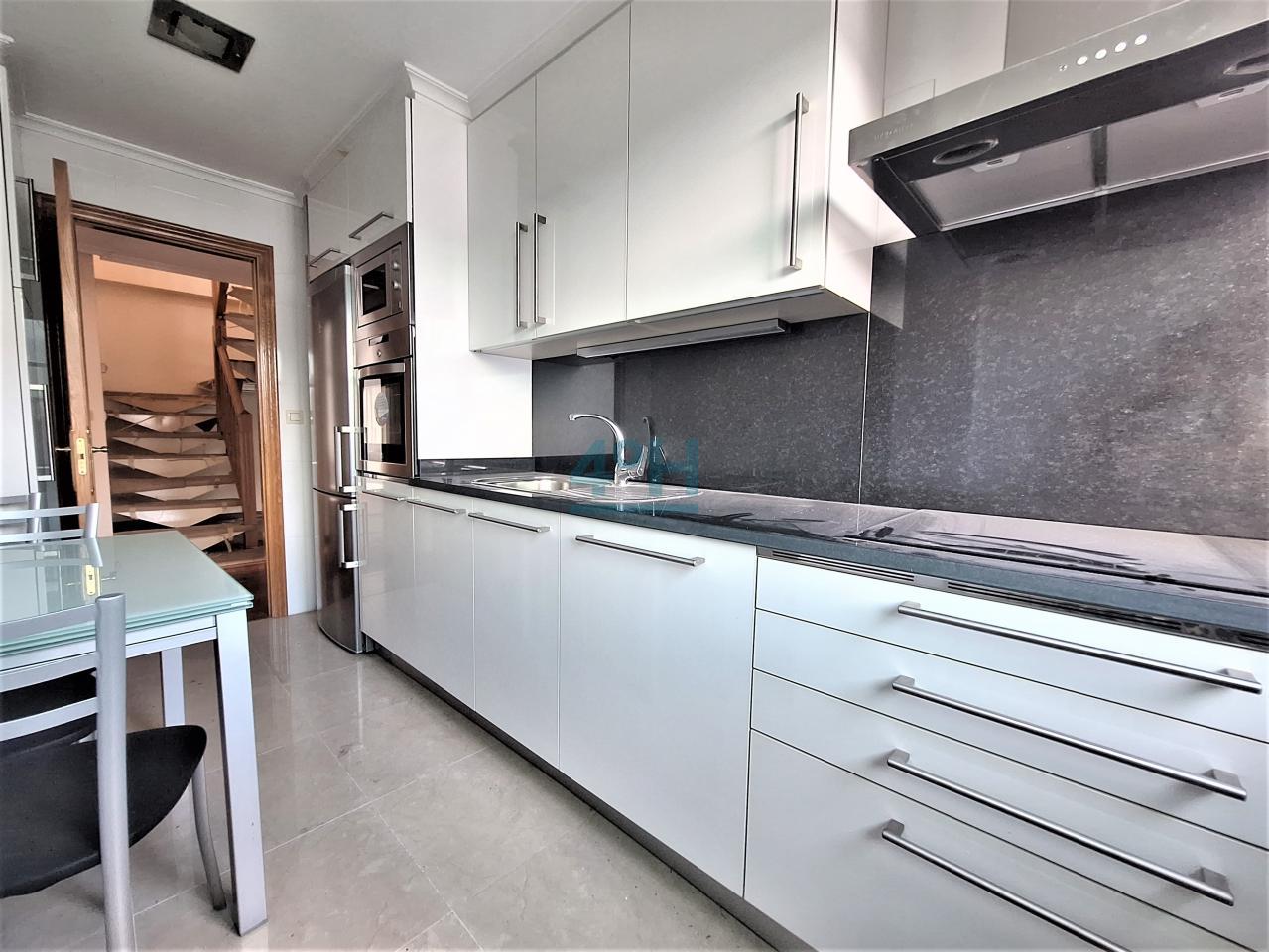 Planta baja: hall, cocina independiente amueblada con electrodomésticos (a estrenar), salón-comedor, dormitorio con armarios empotrado, un baño y un aseo.