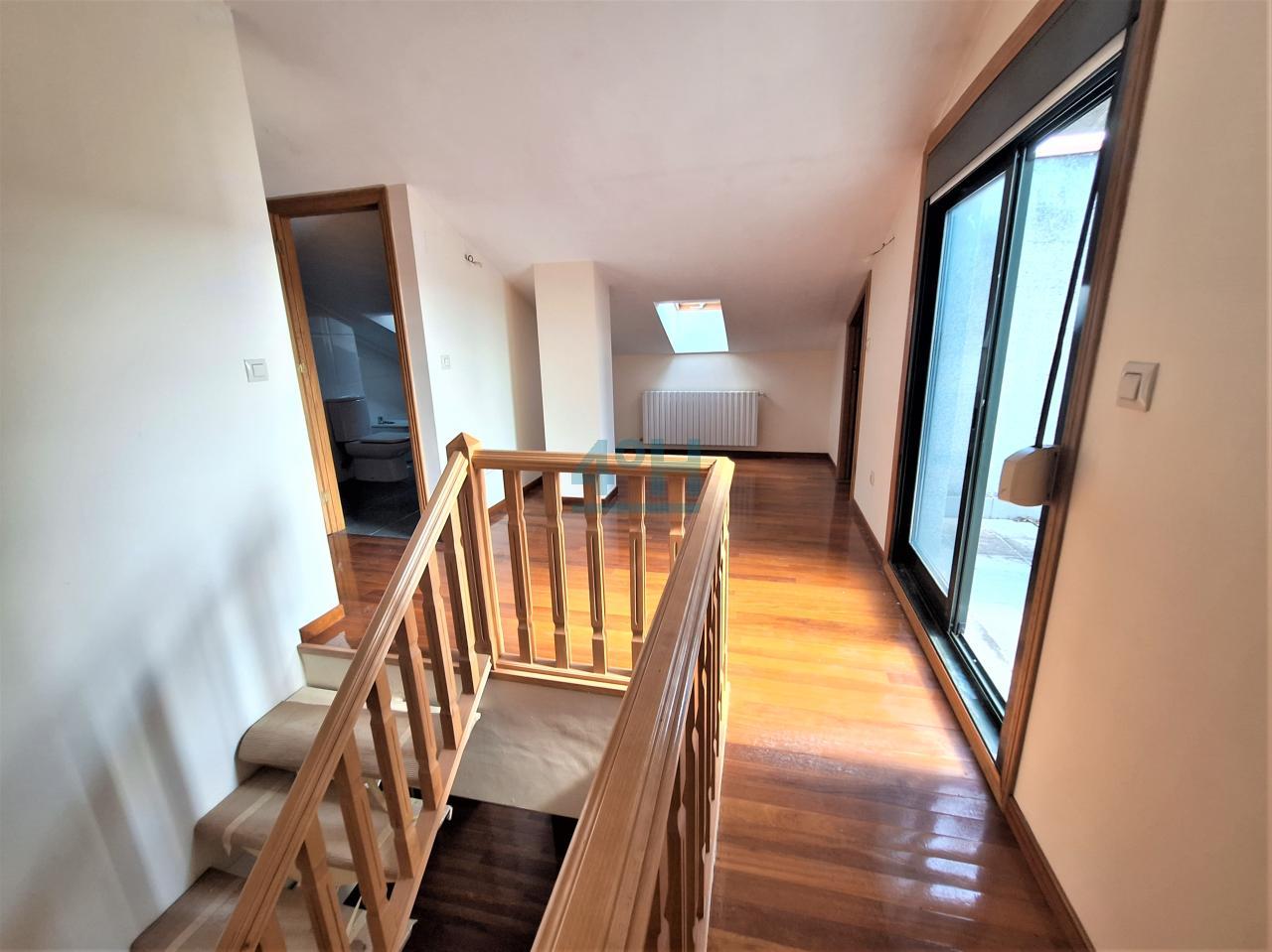 Planta superior: hall con acceso al balcón-terraza en forma de L, dos dormitorios (ambos con armario empotrado), un trastero/vestidor y un baño.
