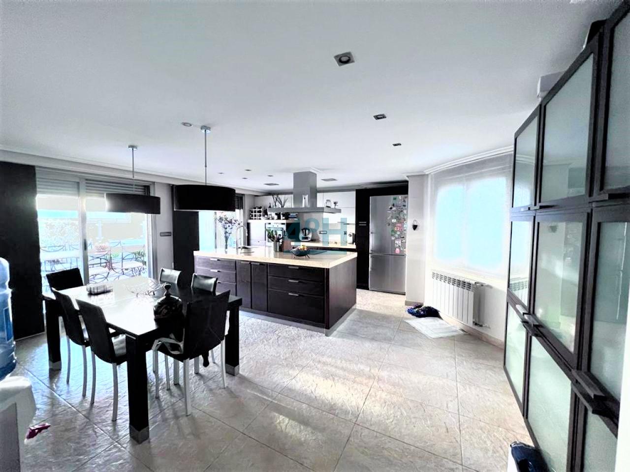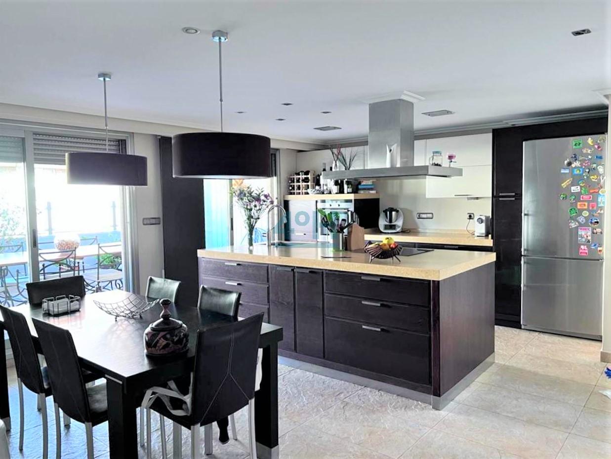 La cocina cuenta con una isla de madera maciza, muebles de Scabolini, electrodomésticos de alta gama (Siemens, Liebherr), suelo de gres antimanchas, despensa y zona de lavandería.
