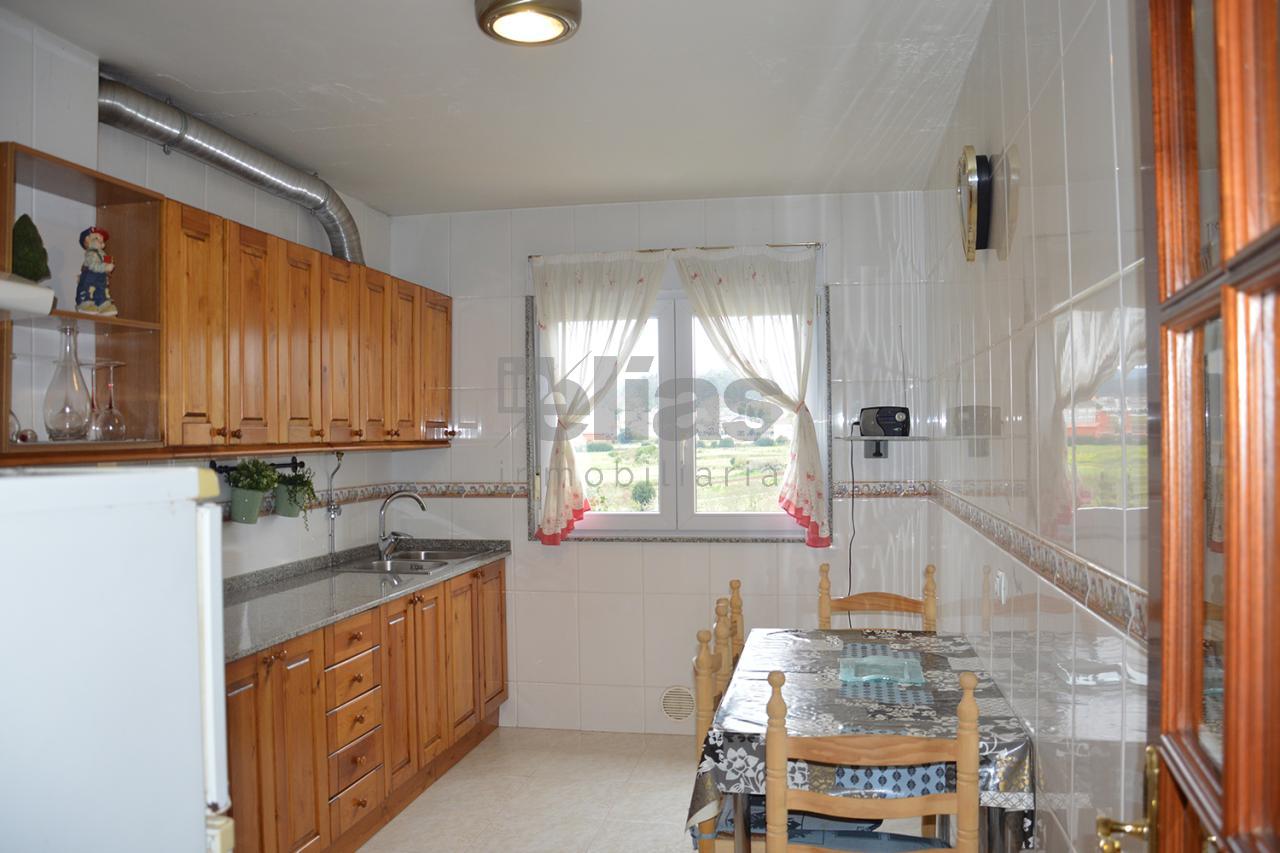 Se vende acogedor piso situado en A Piroga (Vimianzo). El piso está en una tercera planta con ascensor. Se distribuye en una amplia cocina totalmente amueblada, tres habitaciones, una de ellas interior, salón y un baño completo con bañera. Dispone de luces a ambas fachadas, el suelo principal es de plaqueta y cuenta con calefacción eléctrica. Se incluye plaza de garaje y trastero.