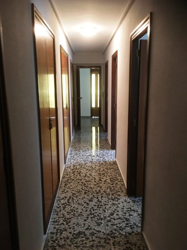 El suelo de la vivienda es de terrazo, las ventanas de aluminio y las puertas de madera.